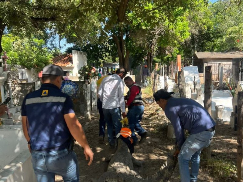 Susto de tumba: capturan enorme cocodrilo en panteón de Eldorado