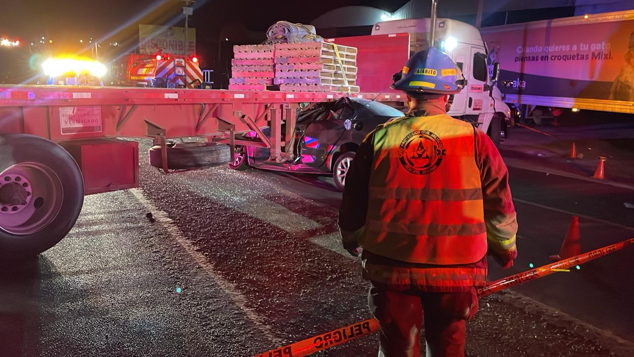 El saldo del accidente fue de tres personas sin vida y una más quedó gravemente herida luego de que el vehículo en el que viajaban se impactara de bajo de un camión de carga.