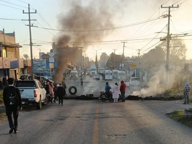 Pobladores bloquean carretera Tlaxcala-Texmelucan exigiendo mayor presupuesto y reforzada seguridad local comunitaria