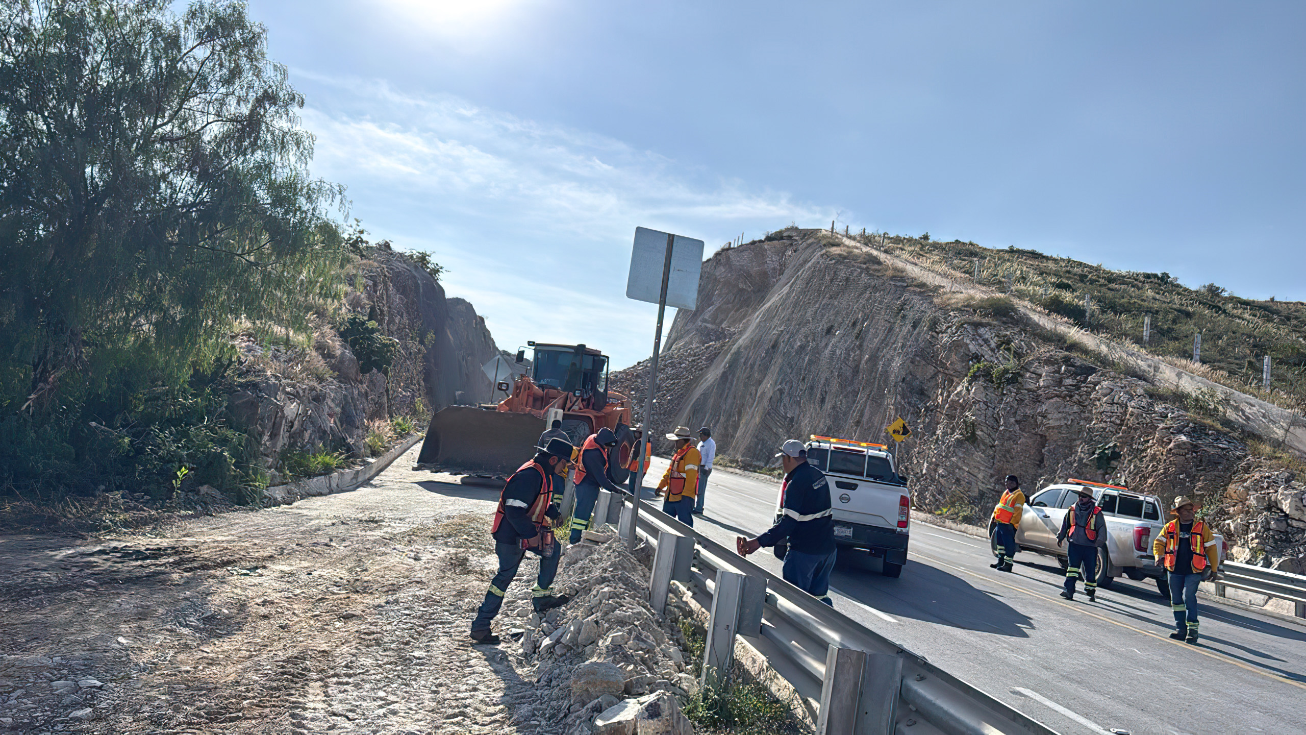 La Comisión Estatal de Infraestructura informó que personal de la dependencia trabaja en la remoción de un derrumbe registrado la noche del 15 de octubre en el kilómetro 43+900 de la Carretera Estatal 100, a la altura del municipio de Ezequiel Montes, poco después de la localidad de Bernal.