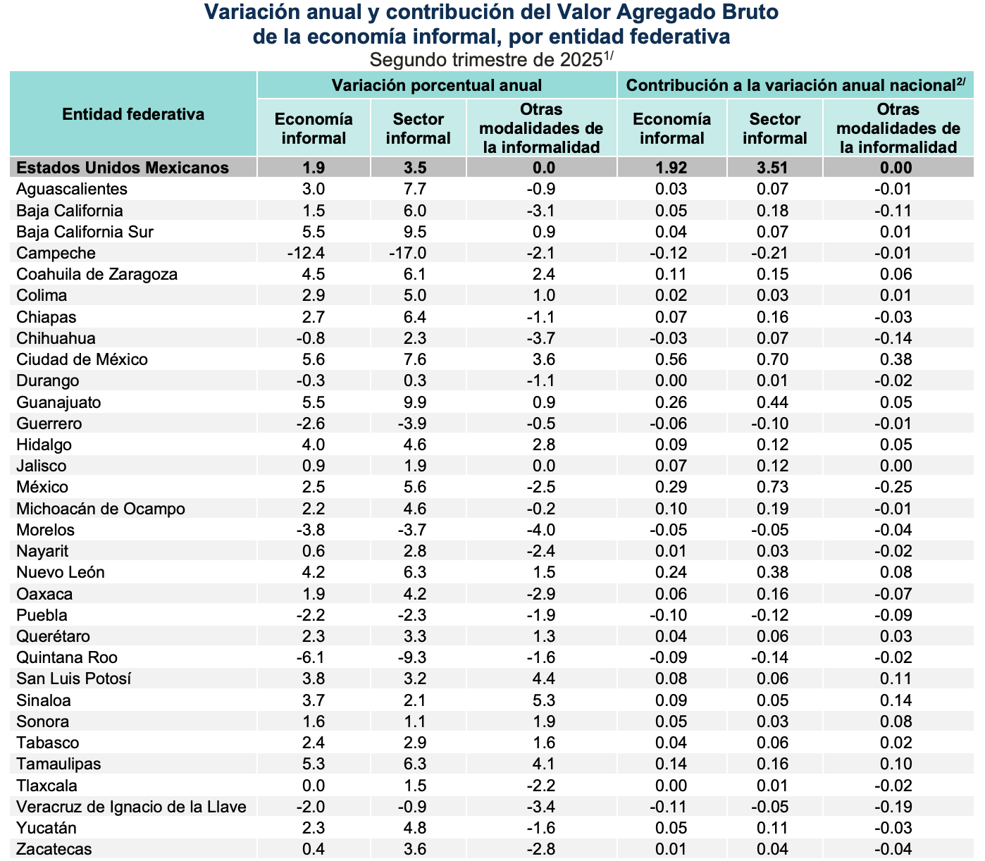 El INEGI destacó que estas mediciones permiten valorar la dinámica productiva que ocurre fuera del sector formal en cada entidad federativa, así como su impacto en la generación de ingresos y ocupación laboral.