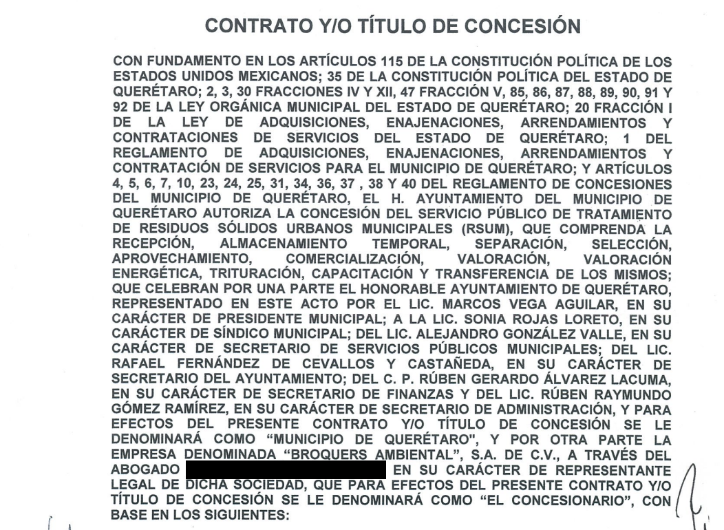 El Municipio de Querétaro otorgó un comodato a Broquers Ambiental y a Promotora Inmobiliaria Majahual en 2016, durante la administración de Marcos Aguilar Vega, bajo el argumento de que era imposible e inconveniente para el ayuntamiento realizar directamente el servicio de tratamiento de residuos sólidos urbanos.