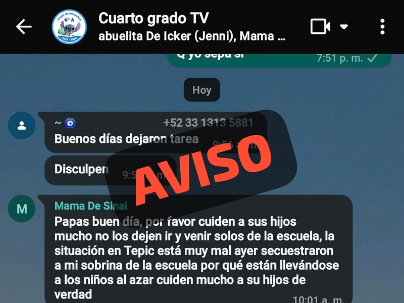 Circulan mensajes de falsos secuestros infantiles; piden no difundirlos