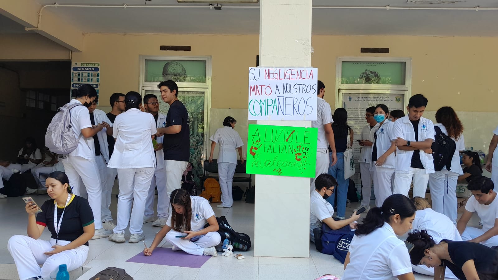 Los manifestantes pidieron que las autoridades universitarias garanticen no solo la formación preventiva para futuros profesionales de la salud, sino también su seguridad durante contingencias meteorológicas.