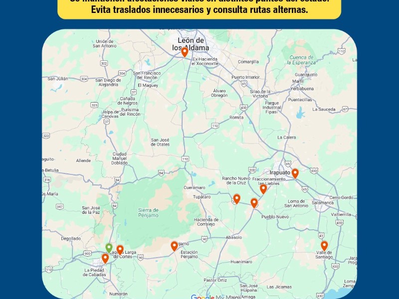 La Secretaría de seguridad y paz ciudadana de Guanajuato, informó sobre nueve bloqueos carreteros confirmados la mañana de este miércoles 5 de noviembre, se trata de las siguientes vías: