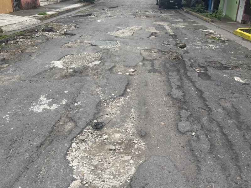 Vecinos de la Juan de la Luz Enríquez denuncian grandes baches