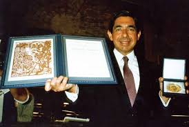 • El ex presidente de Costa Rica, Óscar Arias Sánchez, lo recibió en 1987 por sus esfuerzos para la paz en Centroamérica, que derivaron en el Plan de Paz de Esquipulas.