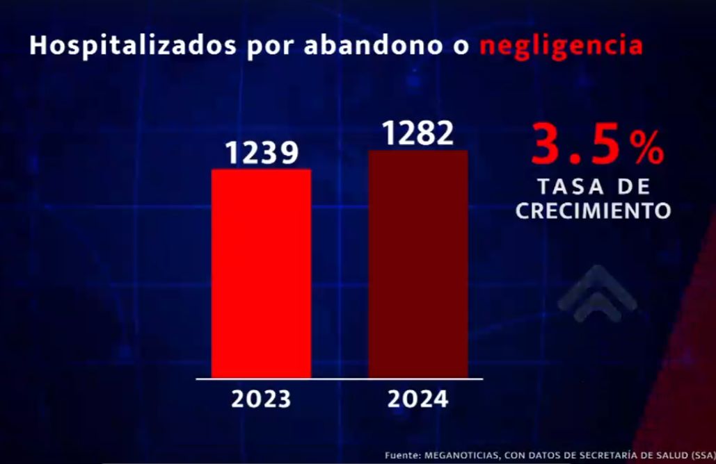 La Secretaría de Salud reportó que de 2023 a 2024, los casos de niñas, niños y adolescentes hospitalizadas por abandono o negligencia en nuestro país aumentó un 3.5 por ciento al pasar de mil 239 a mil 282.
