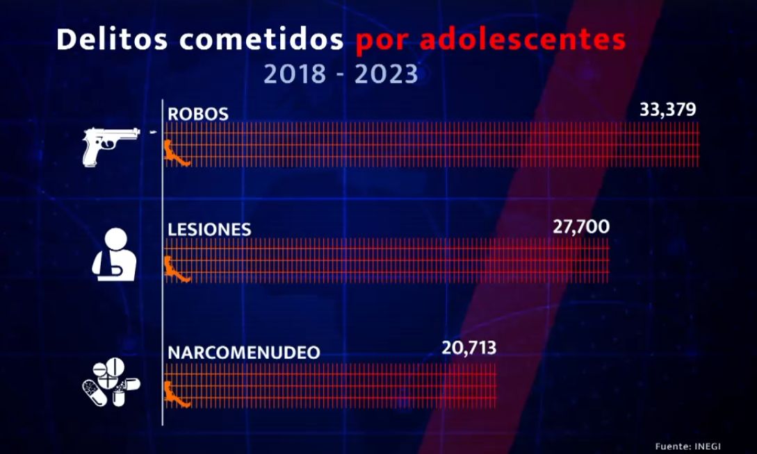 En los delitos relacionados con el narcomenudeo cometidos por adolescentes, se registraron 20 mil 713 de 2018 a 2023.