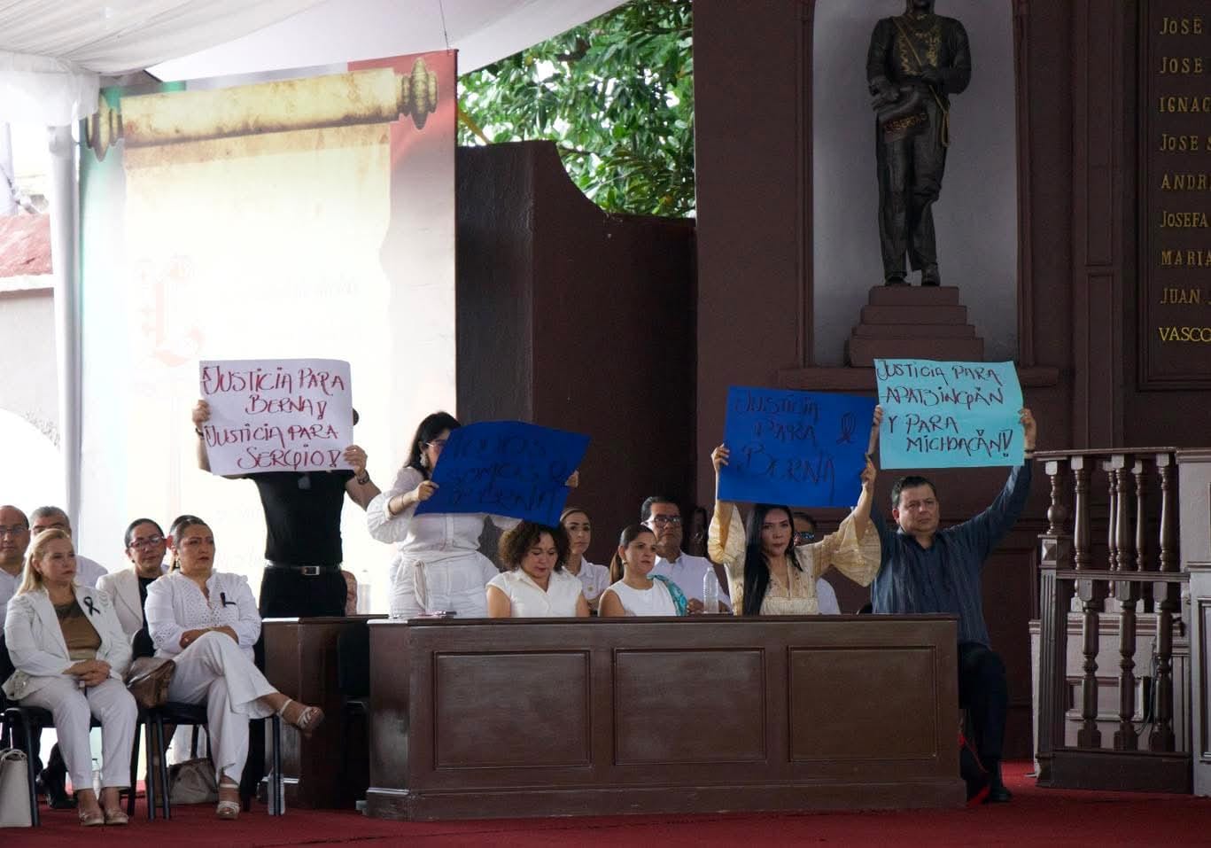 En el marco de la celebración de la Constitución de Apatzingán, esta mañana los diputados que integran el Congreso del Estado de Michoacán se manifestaron a la entrada del evento, se realizaría una sesión Solemne, sin embargo, esta se vio retrasada por la manifestación de los legisladores y personas en contra de la poca atención a la seguridad de los limoneros.