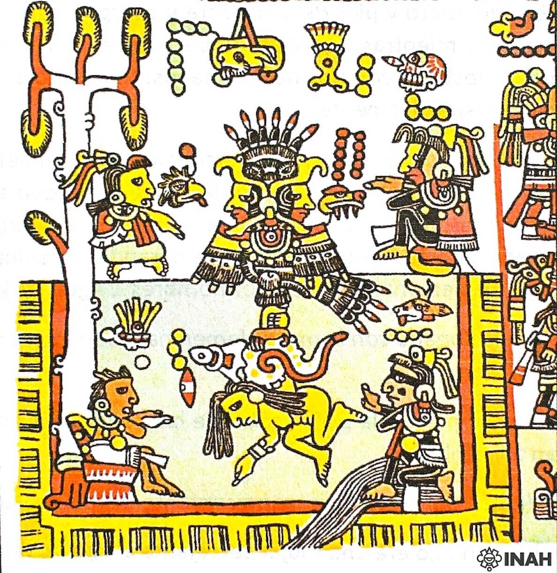Esta imagen, creada entre 1450 y 1500 d.C., guarda una sorprendente similitud con una pintura mural encontrada en Tizatlán, Tlaxcala, donde también aparece una figura femenina sumergida, acompañada de un jaguar bípedo, un águila y deidades de la lluvia.