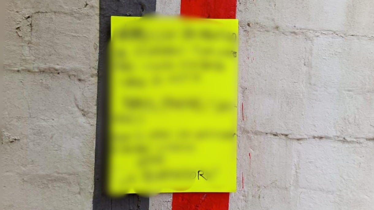 El mensaje, presuntamente firmado por el grupo delictivo "La Barredora", estaba dirigido a un supuesto trabajador de Tránsito del Estado a quien se le atribuyen presuntas actividades ilícitas como extorsión y cobro de piso. La cartulina fue detectada por padres de familia que acudían a dejar a sus hijos y alertaron de inmediato a las autoridades.