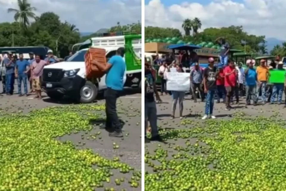 "Lo quieren regalado, pues ahí está", productores de Limón de Apatzingán, Michoacán denuncian que están cansados "de los precios de miseria" que les pagan por su cosecha, por lo que decidieron hacer visible su hartazgo, tirando kilos de del fruto en las calles.