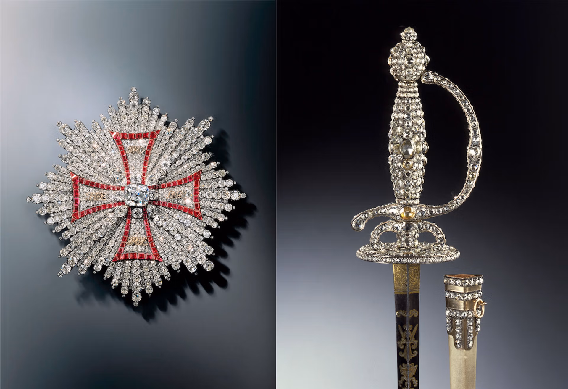 El botín incluía más de 4,300 diamantes, entre ellos el Diamante Blanco de Dresde (valorado en 9-10 millones de euros), una espada con 770 diamantes y el broche de la Reina Amalie Auguste, compuesto por 660 gemas.