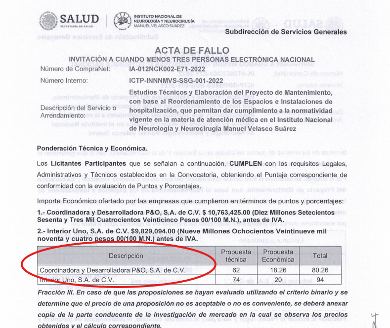 Cabe destacar que uno de los contratos públicos de la compañía data de 2022, suscrito con el Gobierno de la Ciudad de México para brindar servicios al Instituto Nacional de Neurología y Neurocirugía, por un monto superior a los 10 millones de pesos.