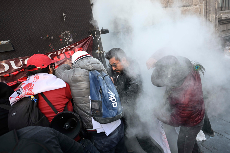 Desde tempranas horas, los docentes intentaron rodear el Palacio Nacional, donde la mandataria ofrece sus conferencias de prensa matutinas y que también funciona como su residencia oficial.