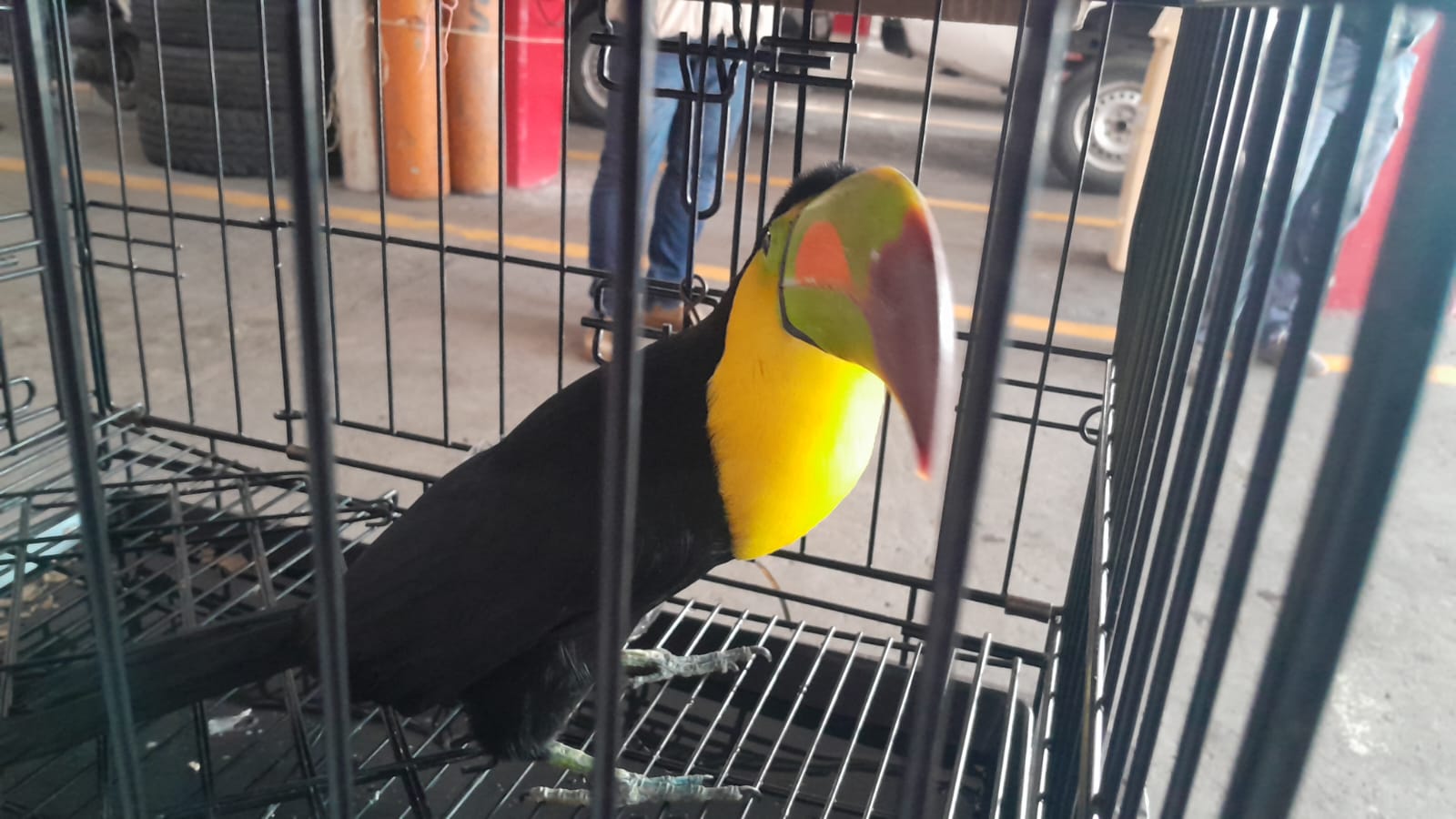Señaló que el tucán se encuentra en buenas de condiciones aparentemente, no puede volar porque tiene las alas recortadas.