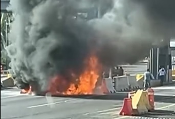 Esta tarde de miércoles una ambulancia del Instituto Mexicano del Seguro Social (IMSS) se incendió al cruzar la caseta de peaje de Cuyutlán, en la autopista Colima-Manzanillo, a la altura del municipio de Armería.