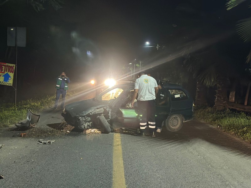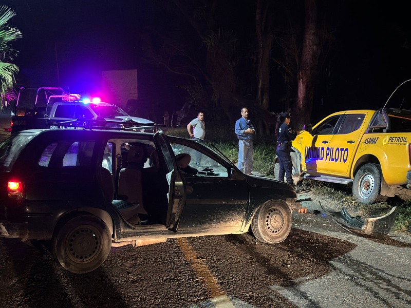 Un hombre resultó lesionado al registrarse la madrugada del domingo un fuerte accidente vehicular sobre la carretera Villa de Álvarez-Minatitlán, justo en el ingreso a la cabecera municipal de Minatitlán, donde estuvieron involucrados una camioneta perteneciente a una empresa minera y un automóvil particular.