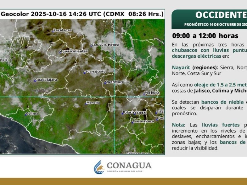 Pronostican lluvias ligeras durante las próximas horas en Colima