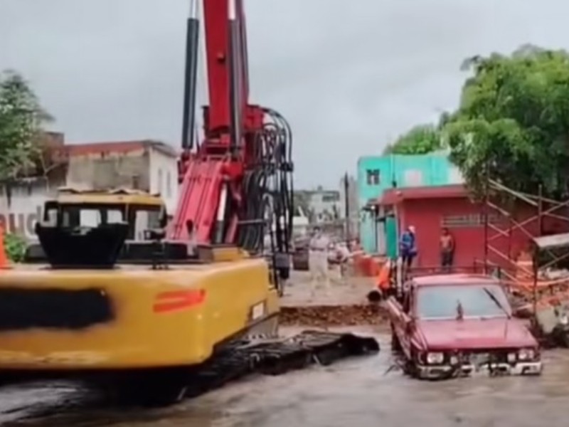 Tras lluvia, aumenta la corriente del arroyo Santiago y arrastra camioneta