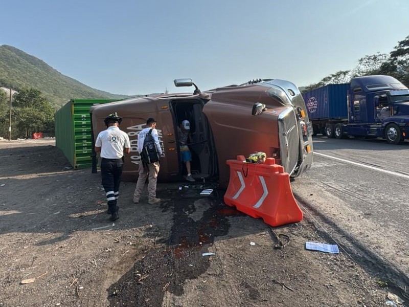 Un lesionado tras volcadura de tráiler en la autopista Colima-Manzanillo