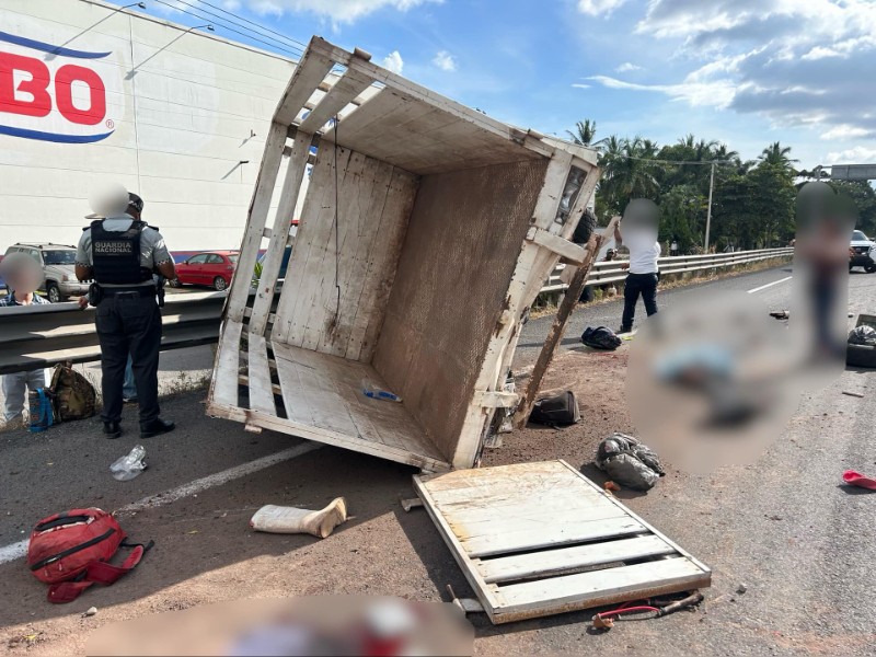 Vuelca camioneta de reparto cerca de la Palma Amarilla; dos lesionados