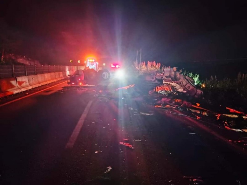 Volcadura de un tractocamión en autopista Colima-Guadalajada