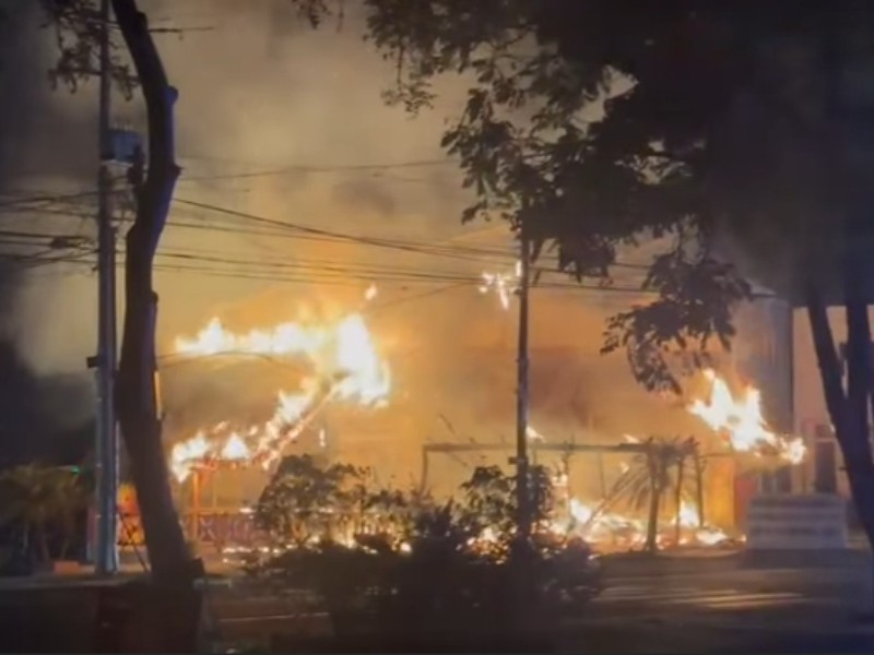 ¡En llamas! Delincuentes incendian restaurante Don Camarón en Villa de Álvarez