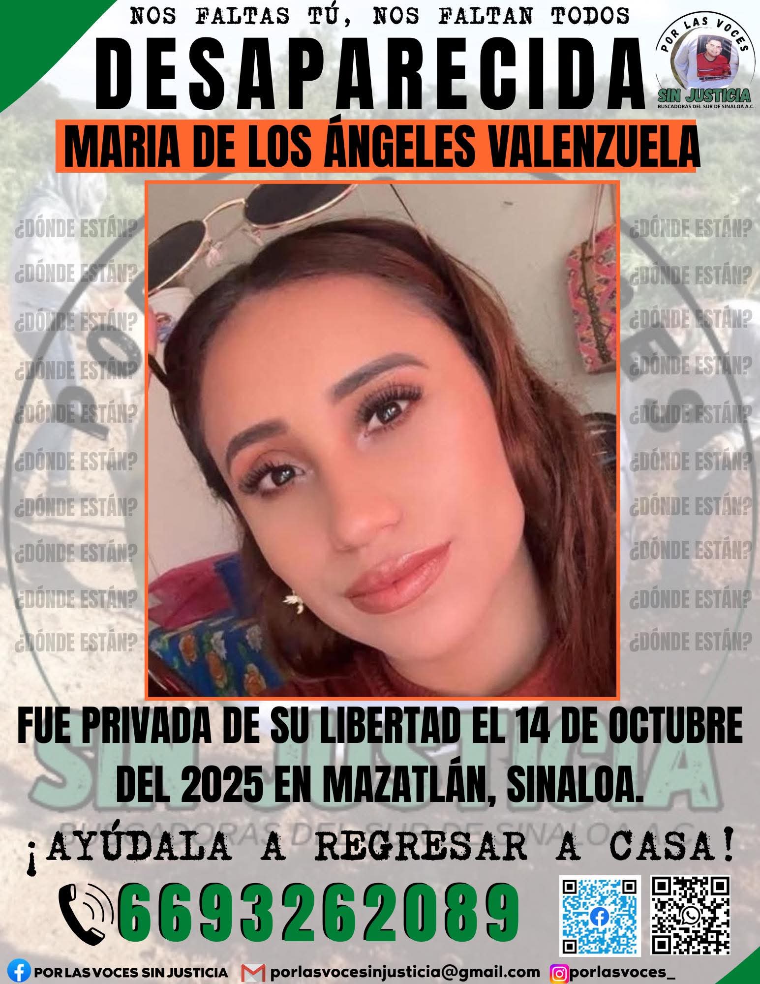 La activista y rastreadora María de los Ángeles Valenzuela fue privada de su libertad la tarde de este martes en la colonia Salvador Allende de Mazatlán.