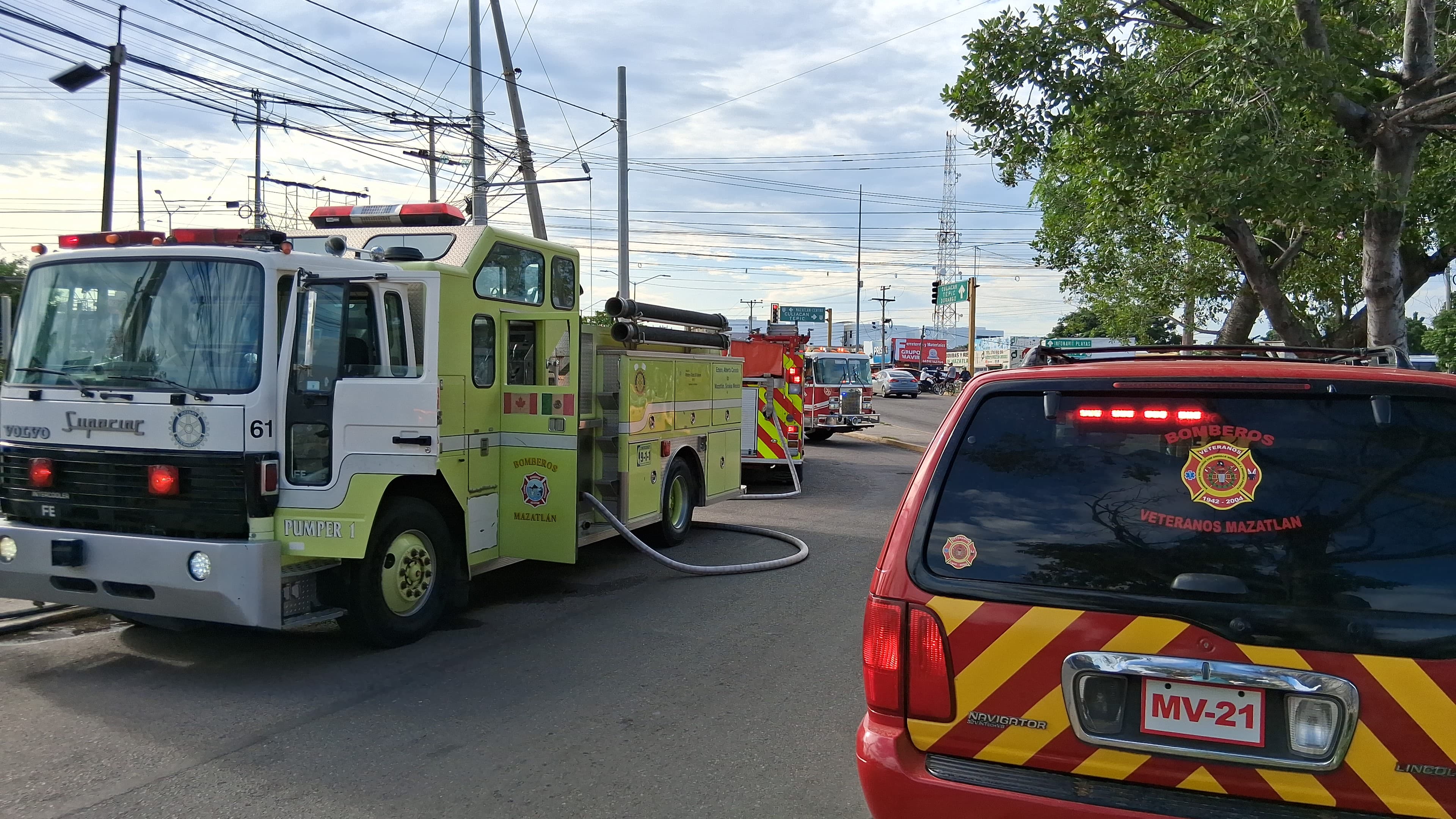 Bomberos Mazatlán y Bomberos Veteranos de Mazatlán tambien acudieron al lugar con equipo especial y un detector de gases para identificar el tipo de material derramado.