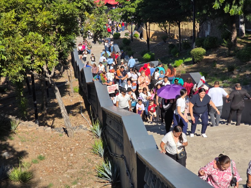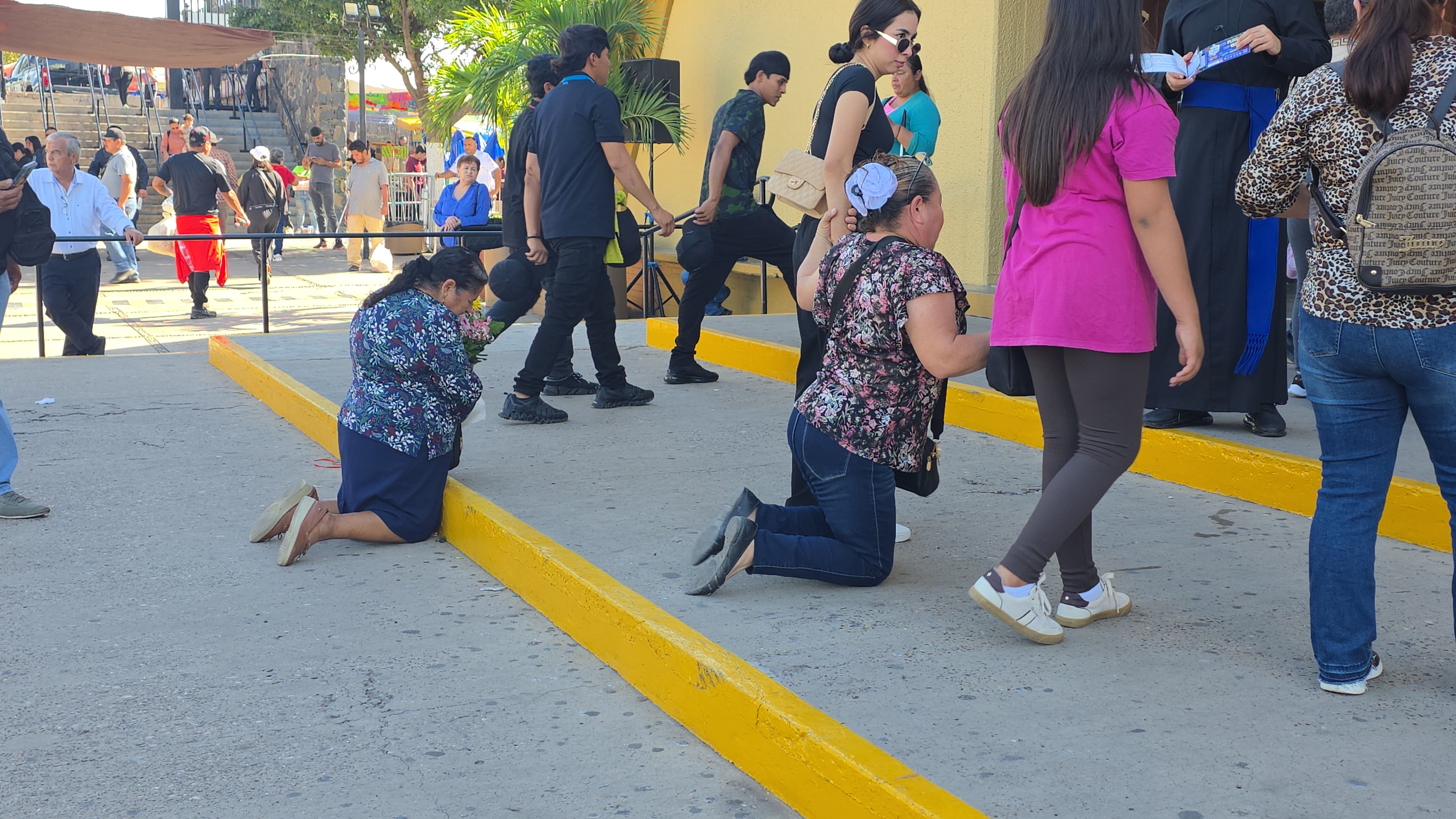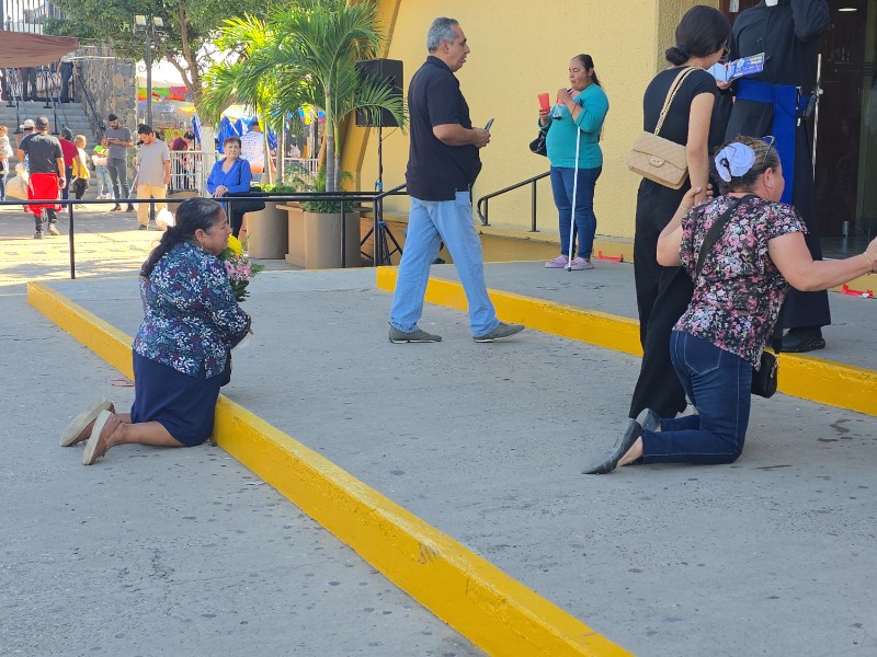Es común observar a devotos que ascienden las escalinatas de rodillas, una forma de penitencia o agradecimiento por los favores recibidos.