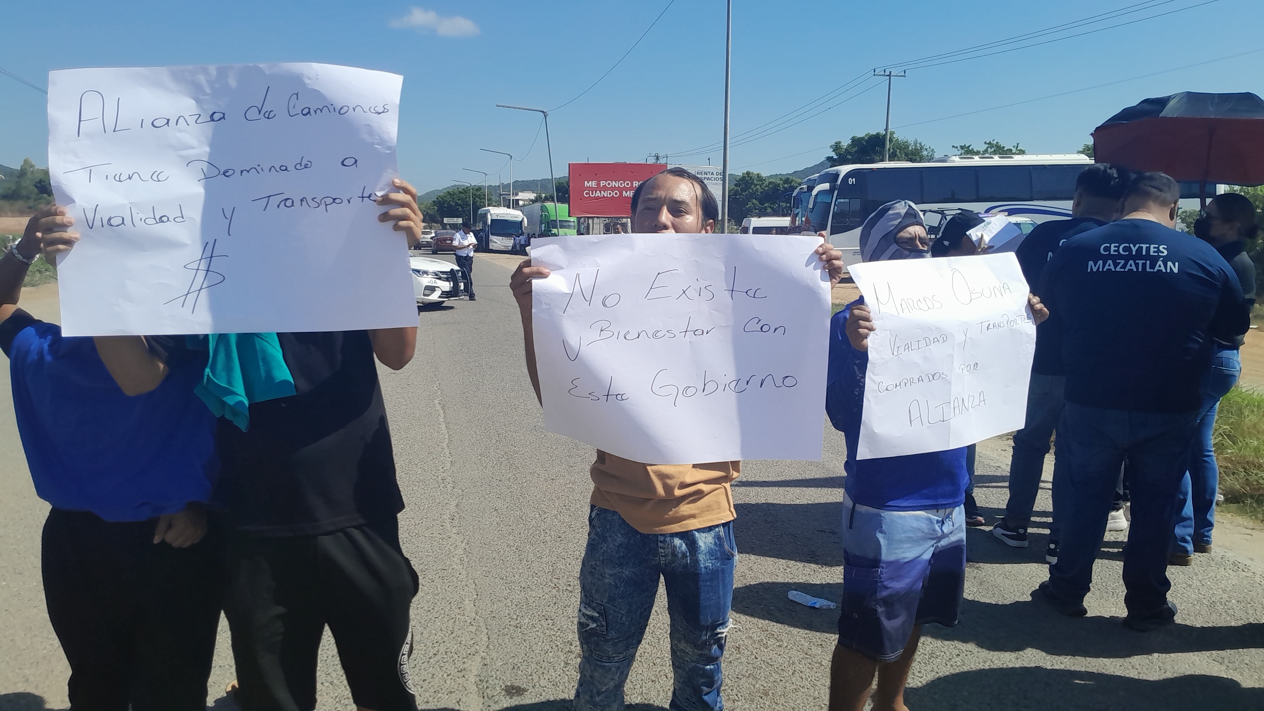 Habitantes de la Invasión San Antonio, Pradera Dorada con sus distintas etapas y colonia La Cantera, ubicadas en la zona norte de Mazatlán, tomaron una parte de la avenida Múnich a la altura del estadio de fútbol para exigir a las autoridades una extensión en tres rutas de camiones que pasan por ese sector de Mazatlán.