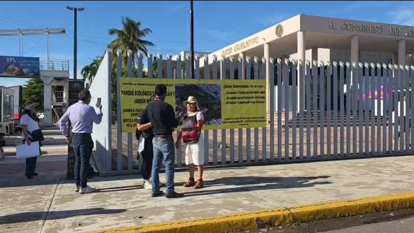A minutos de que iniciara la sesión en la que el gobernador Rubén Rocha Moya presentaría su Cuarto Informe de Gobierno, un grupo de ciudadanos se concentró en los accesos del Congreso del Estado para exigir la protección de los espacios públicos, particularmente el Parque Ecológico de Culiacán y el Parque Botánico.