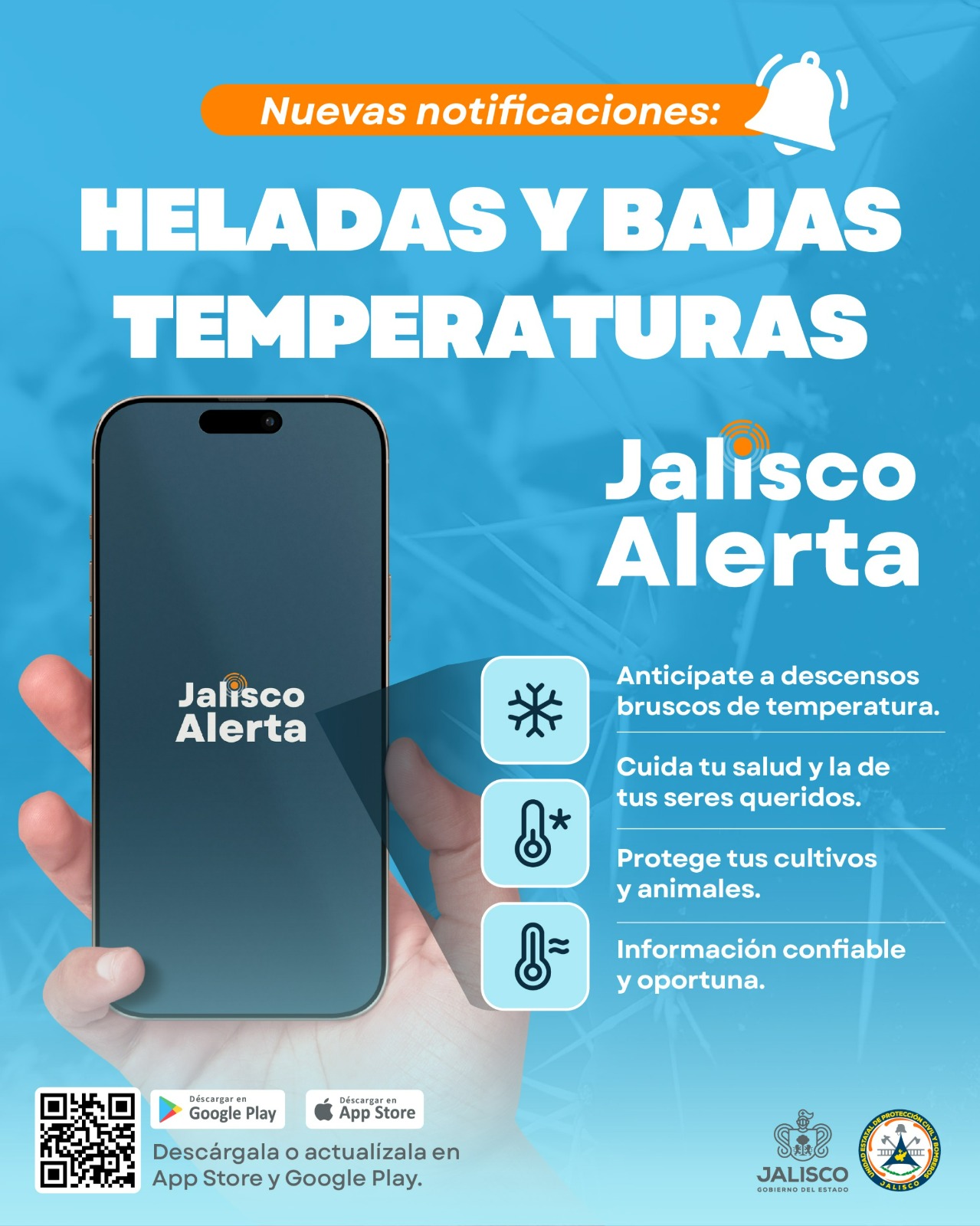 La aplicación móvil para anticipar riesgos y activar medidas de prevención: "Jalisco Alerta", del Gobierno Estatal ahora tiene nuevas notificaciones en las que informará las condiciones climáticas y el estado del tiempo que se registre en la entidad. Esto ante la temporada de heladas y bajas temperaturas.