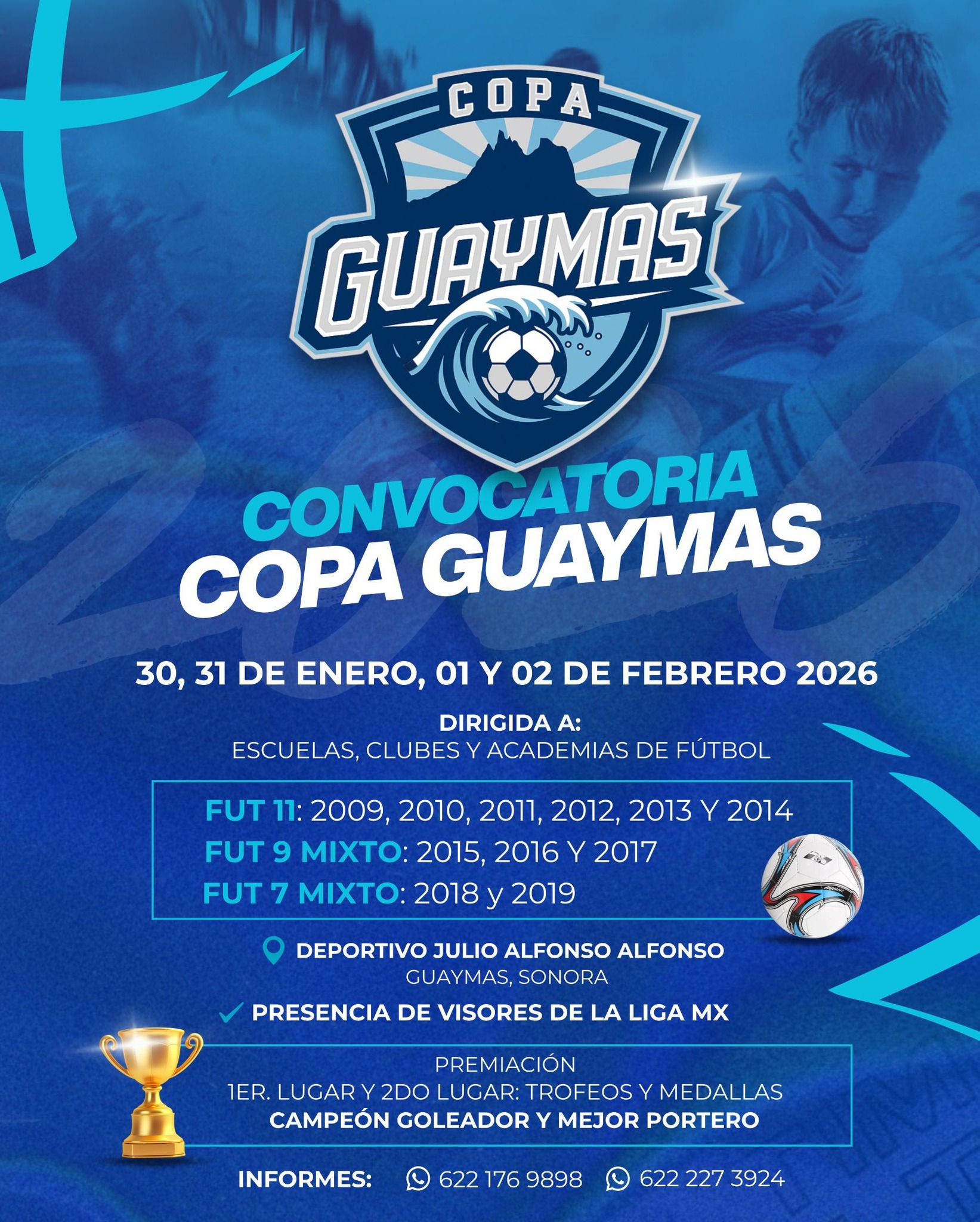 La "Copa Guaymas" en su edición 2026 convoca a todos los jugadores, equipos, ligas de futbol amateur e instituciones educativas públicas y privadas, a inscribirse en este prestigiado torneo que reúne a las jóvenes promesas del futbol.