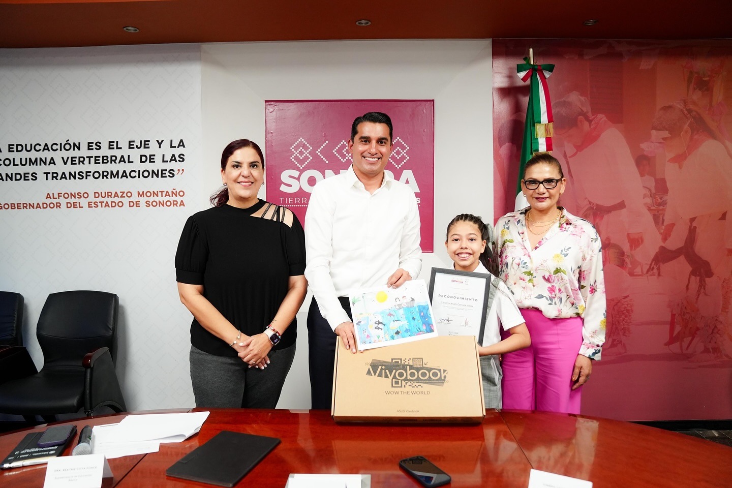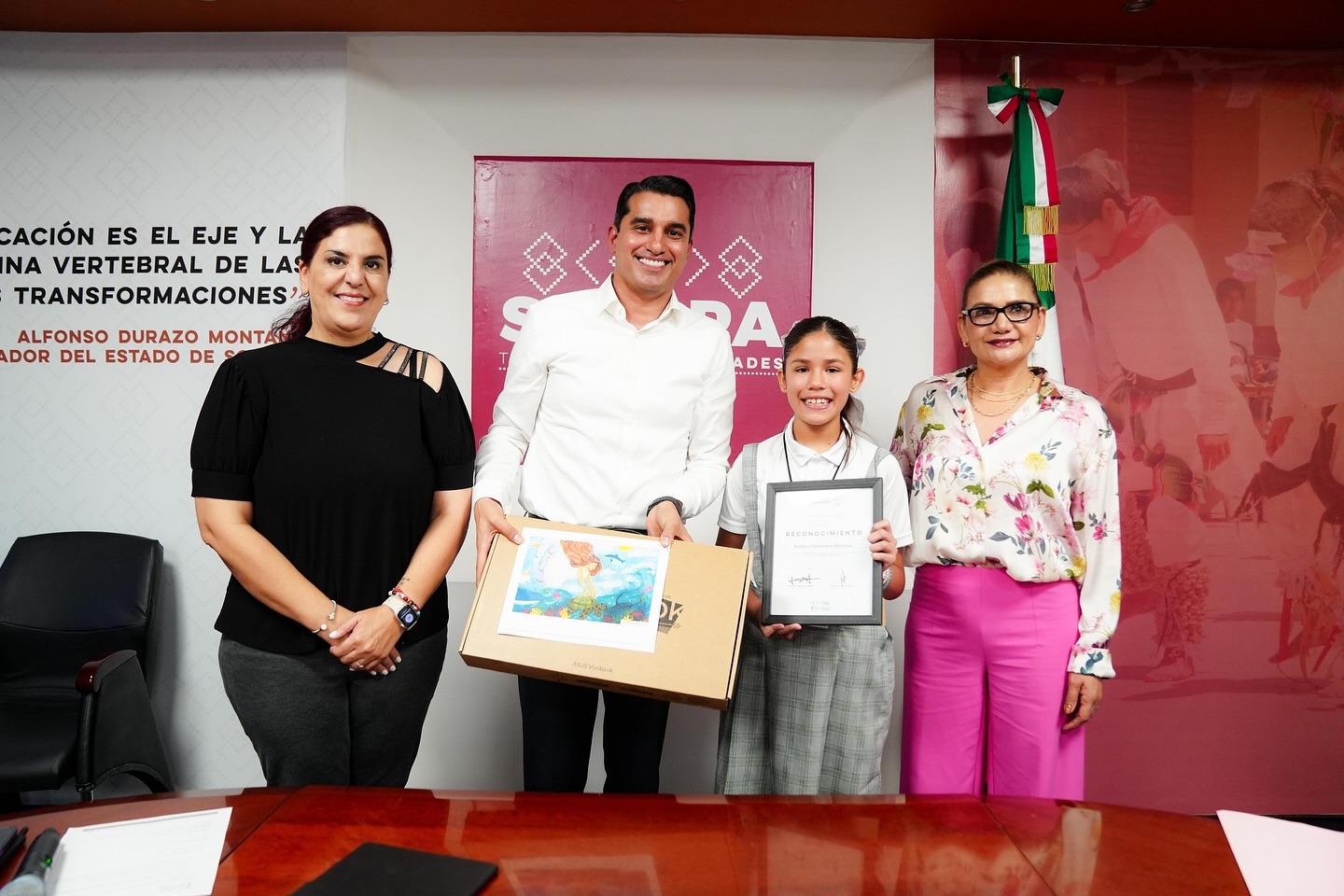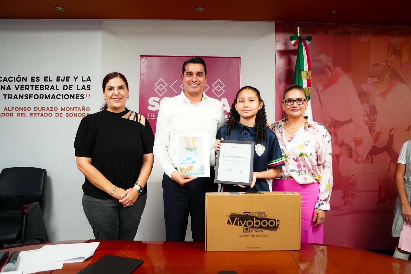 El titular de la SEC, Froylán Gámez Gamboa, destacó que las tres ganadoras estatales son un talento que inspira a la niñez sonorense por lo que las alentó a continuar pintando, soñando y recordándole a la sociedad, con su arte, la importancia de cuidar el planeta.