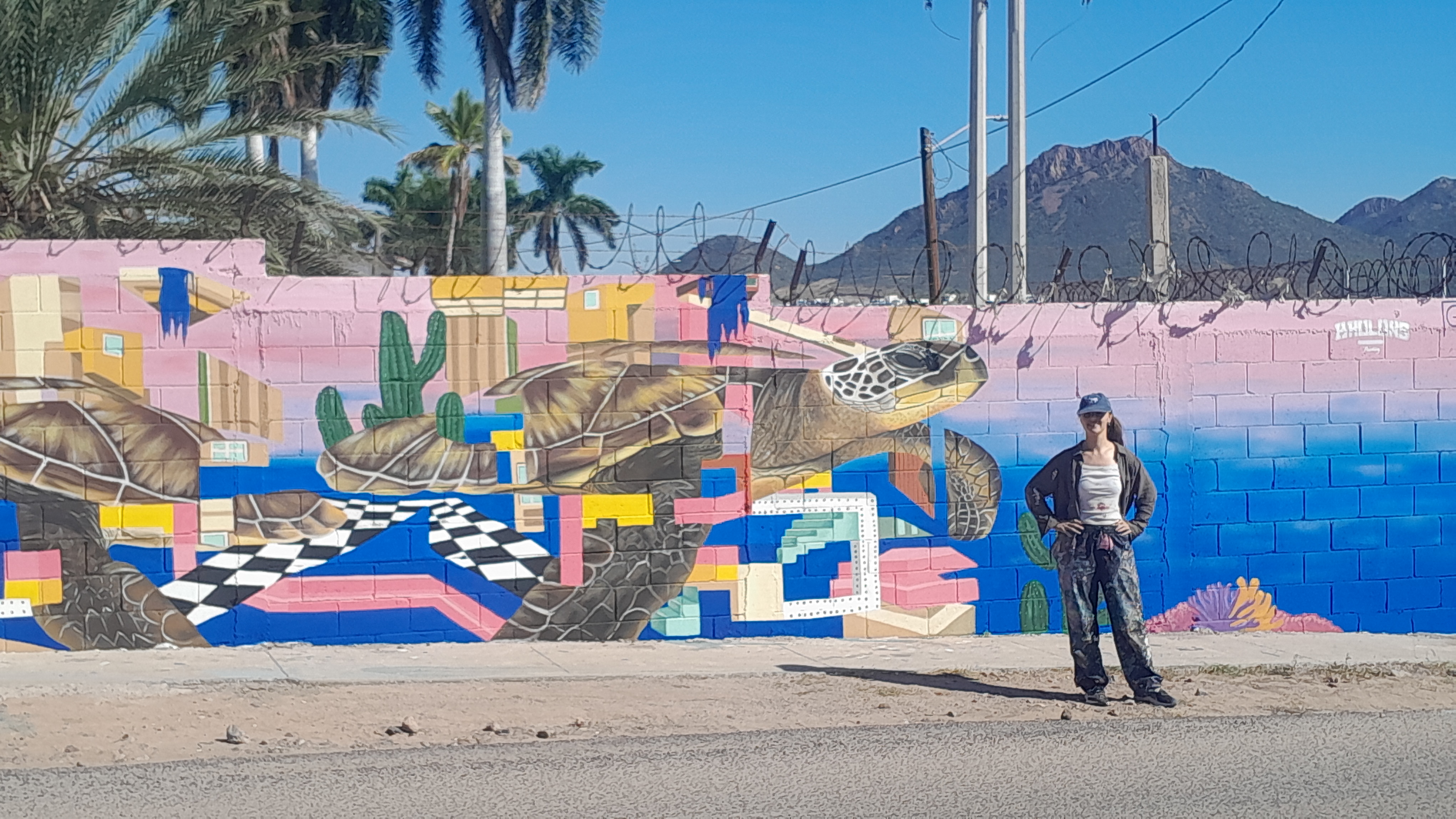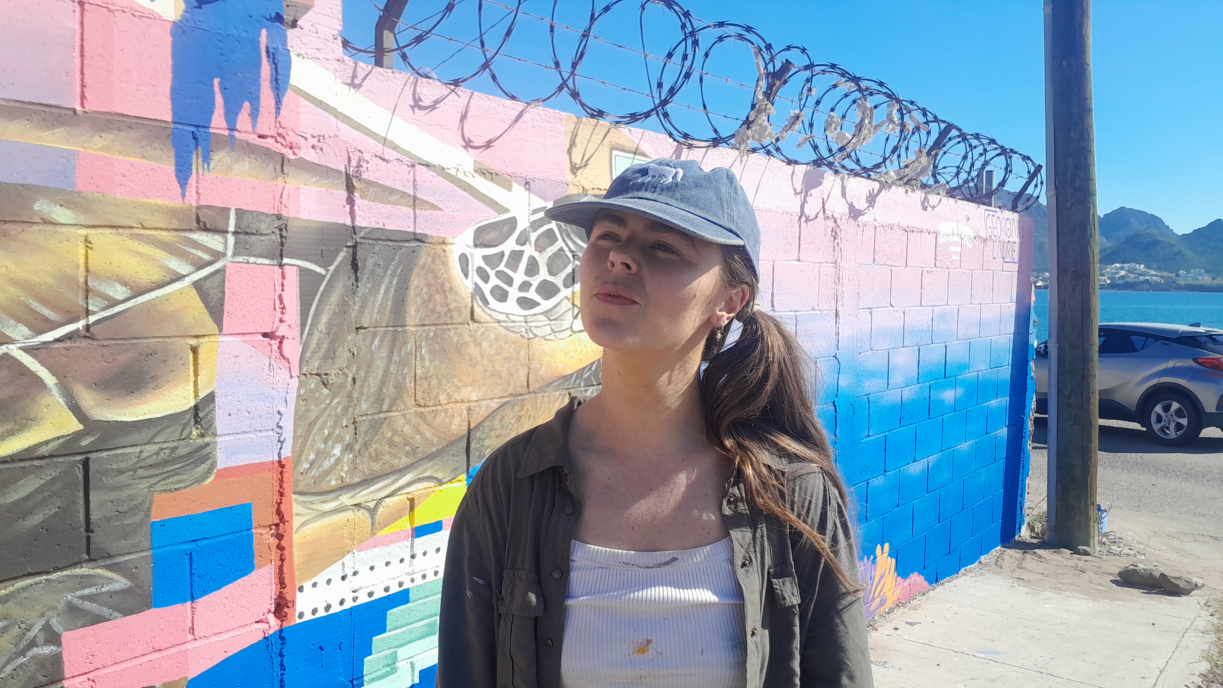 La artista australiana Georgia Laurie, de 31 años, con más de una década de trayectoria en el arte mural, participó recientemente en el Festival Índigo, donde plasmó parte de su obra en uno de los caminos del Puerto de Guaymas.