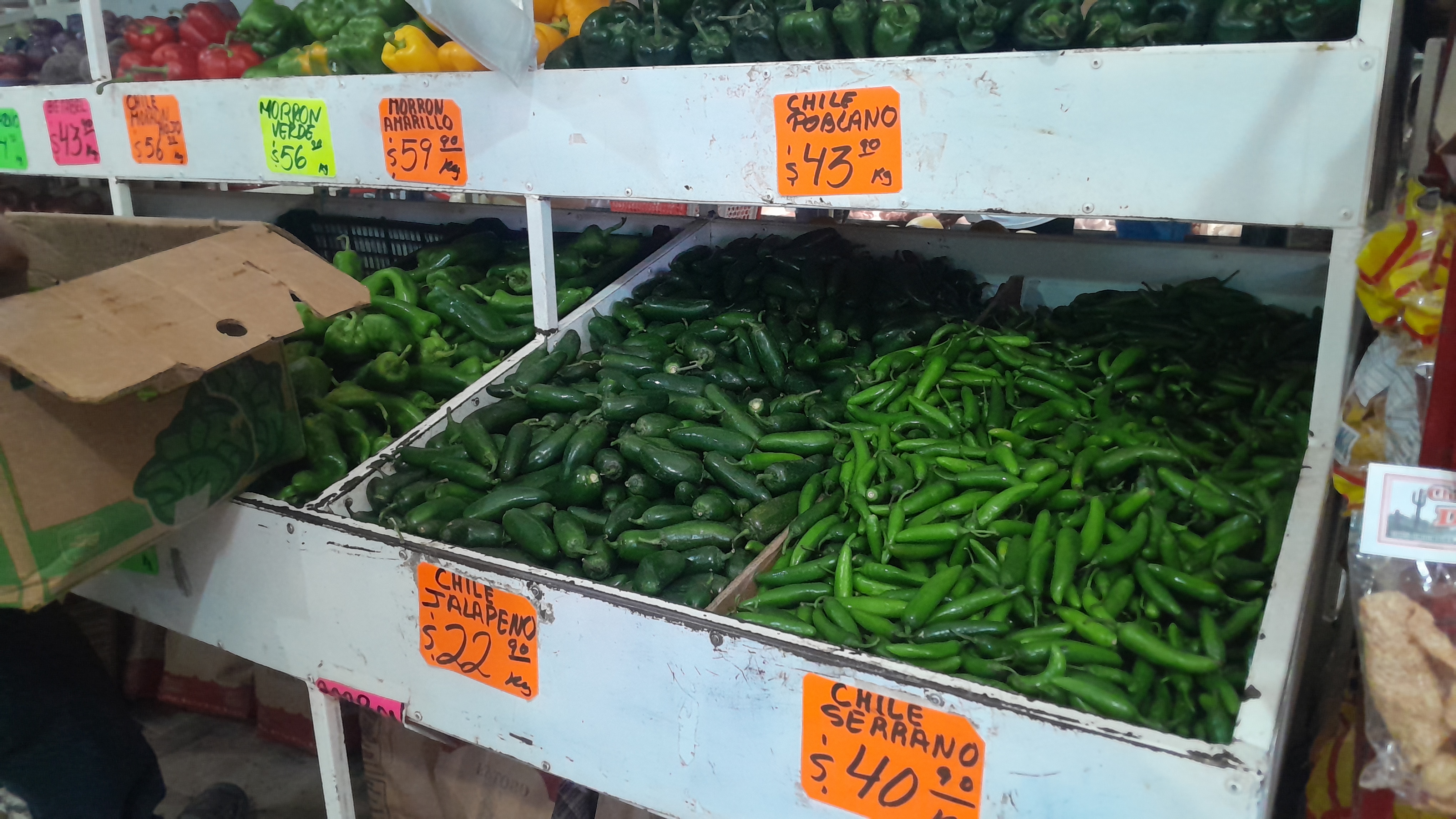 Entre los productos que han tenido mayores variaciones se encuentra el tomate, que pasó de $16 a $22 pesos por kilo, y el chile verde, que aumentó de $27 a $41 pesos. En cuanto al huevo, su precio se ha mantenido en $93 pesos por cartera.