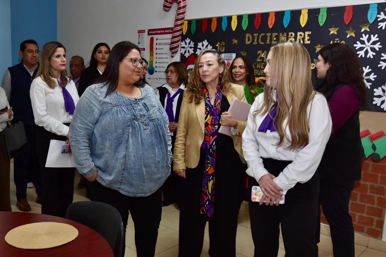 La titular de la Secretaría de las Mujeres en Sonora, Sheila Hernández Alcaraz y la titular de la Vicefiscalía de Feminicidios y Delitos por Razones de Género, Rosario Sánchez Hurtado, acompañaron a la funcionaria federal en el recorrido por la instancia que opera bajo la coordinación de la Fiscalía General de Justicia del Estado (FGJES).