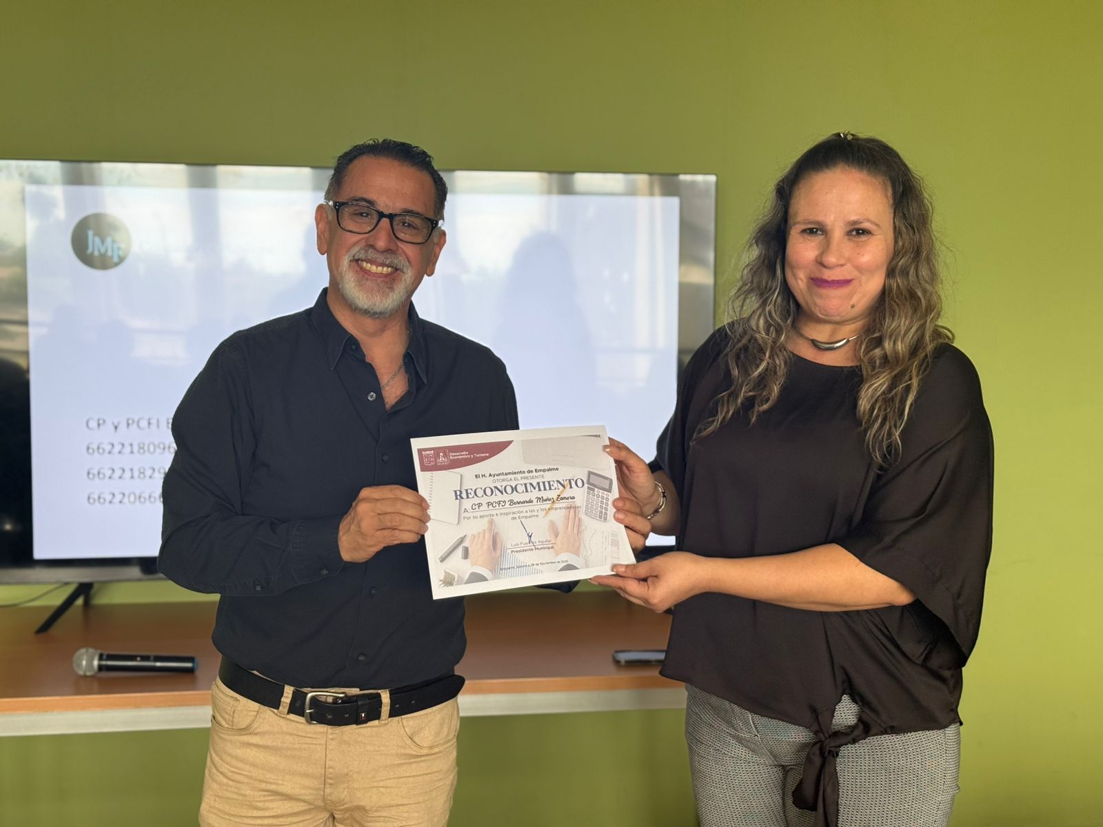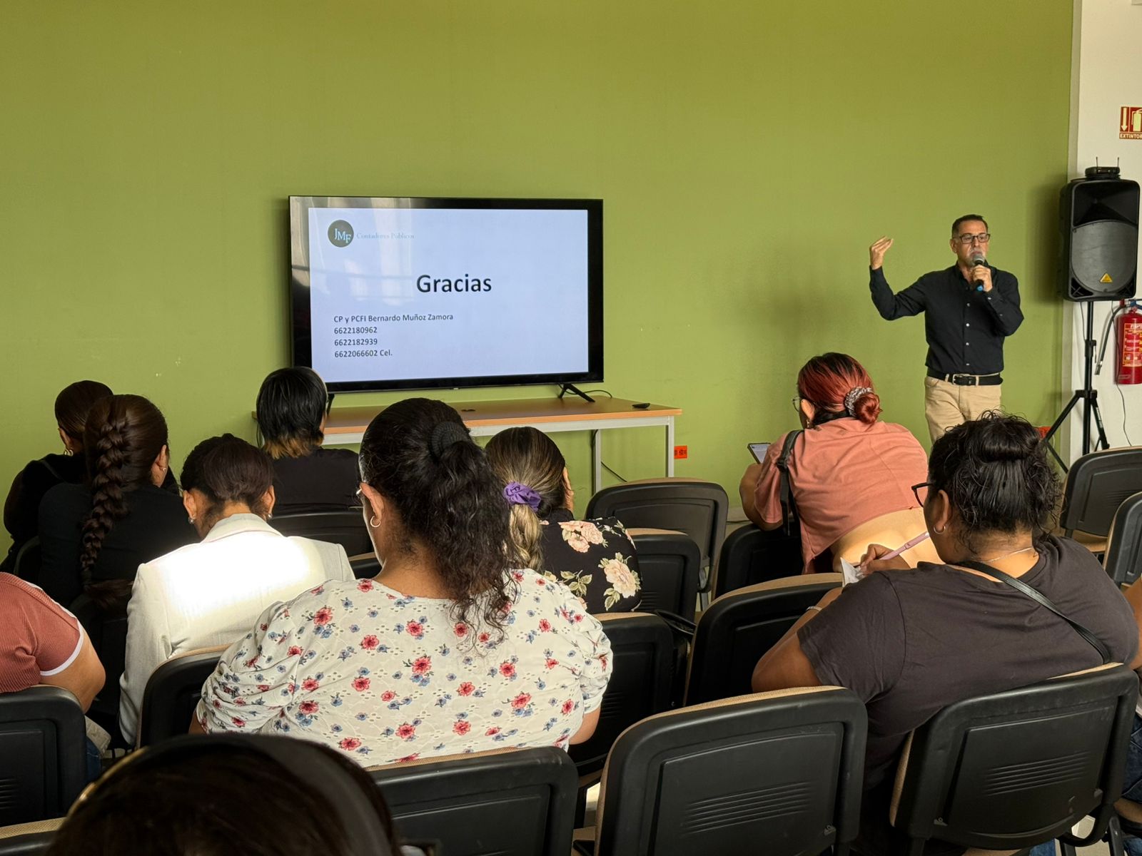 Con el propósito de brindar información esencial para la correcta formalización de nuevos negocios, el Ayuntamiento de Empalme que preside el alcalde Luis Fuentes Aguilar, a través de la Dirección de Desarrollo Económico y Turismo, llevó a cabo la conferencia "Si Abro Mi Negocio, ¿Qué Impuesto Debo Pagar?", dirigida a emprendedoras y emprendedores del municipio.