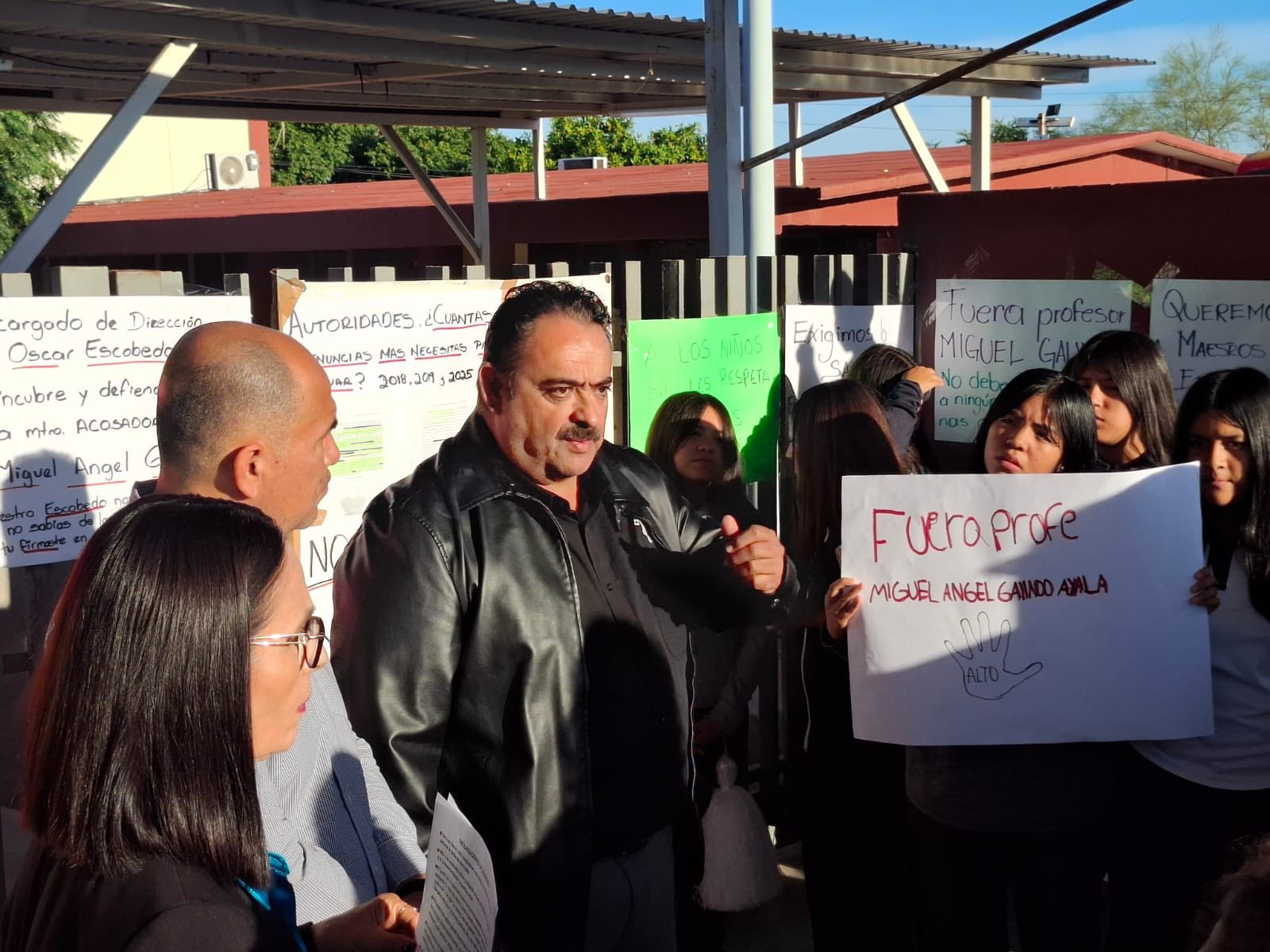 "El maestro no se está portando bien, está teniendo comportamientos incorrectos, con insinuaciones, palabras en doble sentido, tenemos también expedientes donde el maestro tuvo denuncia por lo mismo en el 2018 y en 2019 y aun así el maestro lo único que hacen es que lo retiran de su cargo, lo mandan a secretaría a andar de arriba para abajo y que el nomás siga cobrando su quincena, pero no lo retiran de ser maestro, de dar clases" expresó una de las madres de familia durante la protesta.