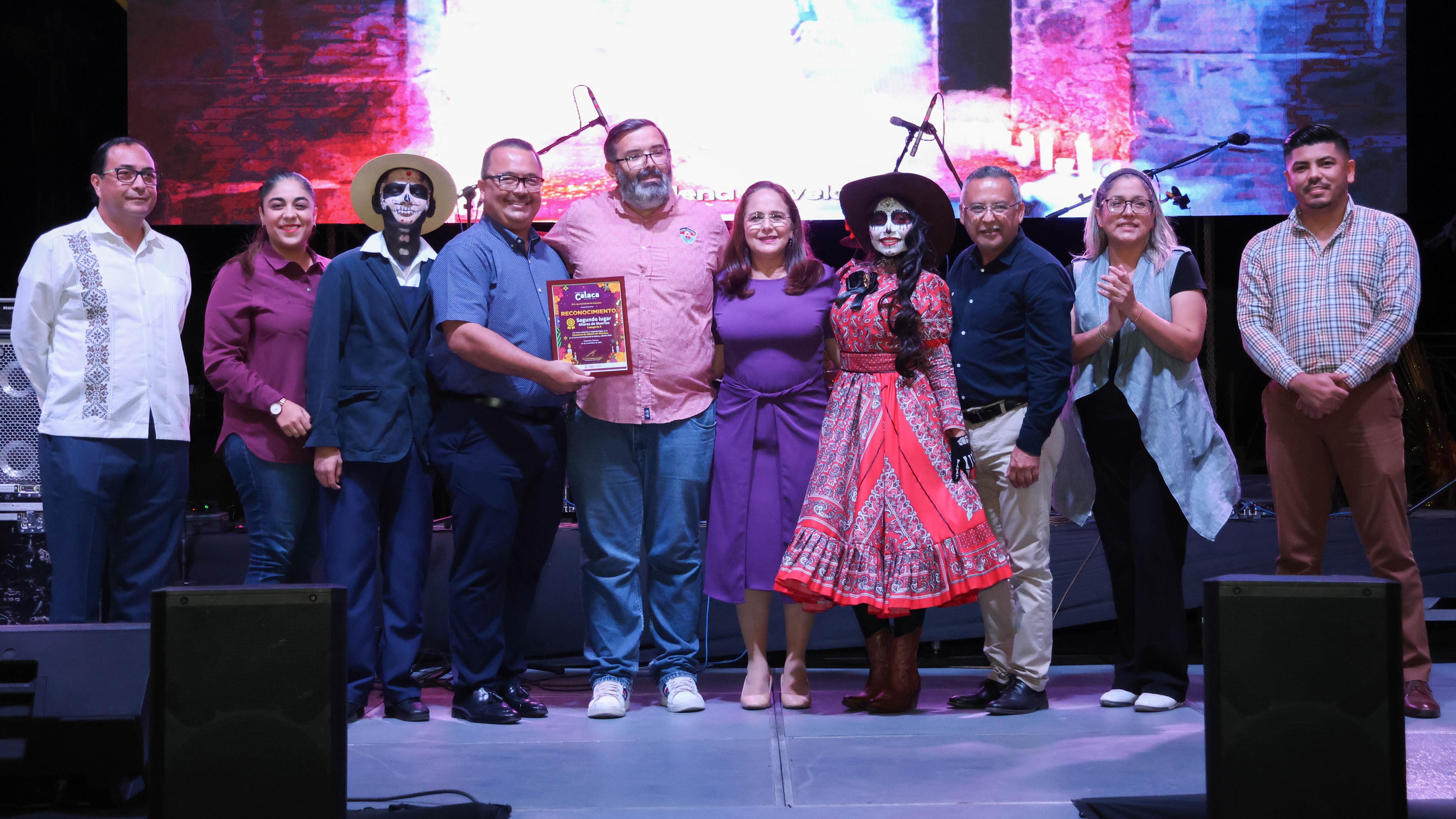 Durante el evento se reconoció el talento y la creatividad de los participantes en las distintas categorías, esto a través del concurso de Calaveritas Literarias, donde el primer lugar correspondió a Luis Omar Parra Ojeda, de la primaria Antonio Montes; en segundo, María Sofía Félix Terrazas, de Colegio Concordia y en tercer lugar Jaritza Meza Olivas, de la primaria María de Jesús Maytorena; asimismo, en el certamen de Catrín y Catrina se reconoció a Mía Berkowitz, de IIEES y a Víctor Gutiérrez como ganadores, mientras que Jennifer Alvarado, recibió un reconocimiento especial por representar a la Catrina oficial de esta edición, así como a las integrantes del Taller de pintura experimental de Casa de la Cultura.