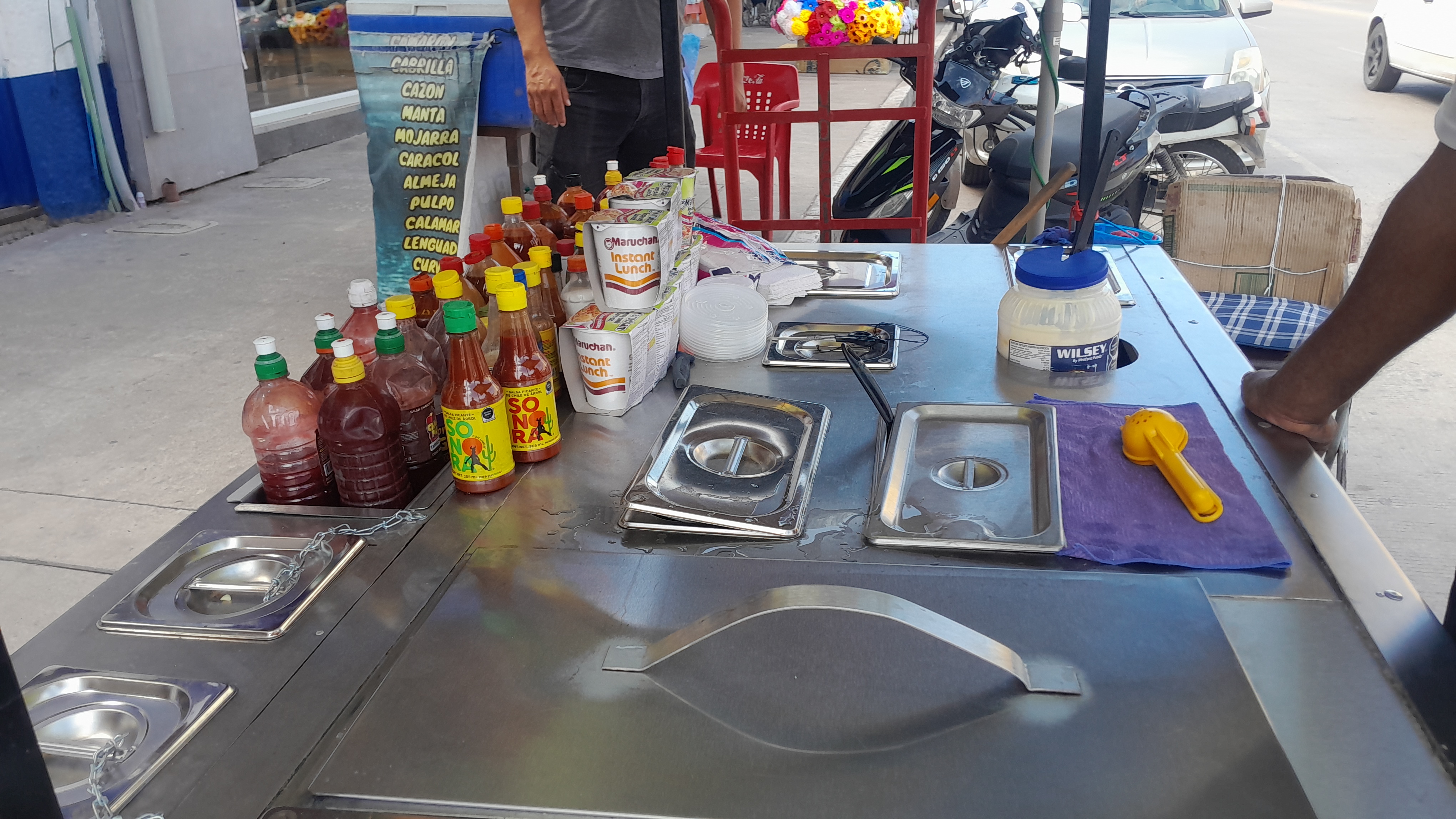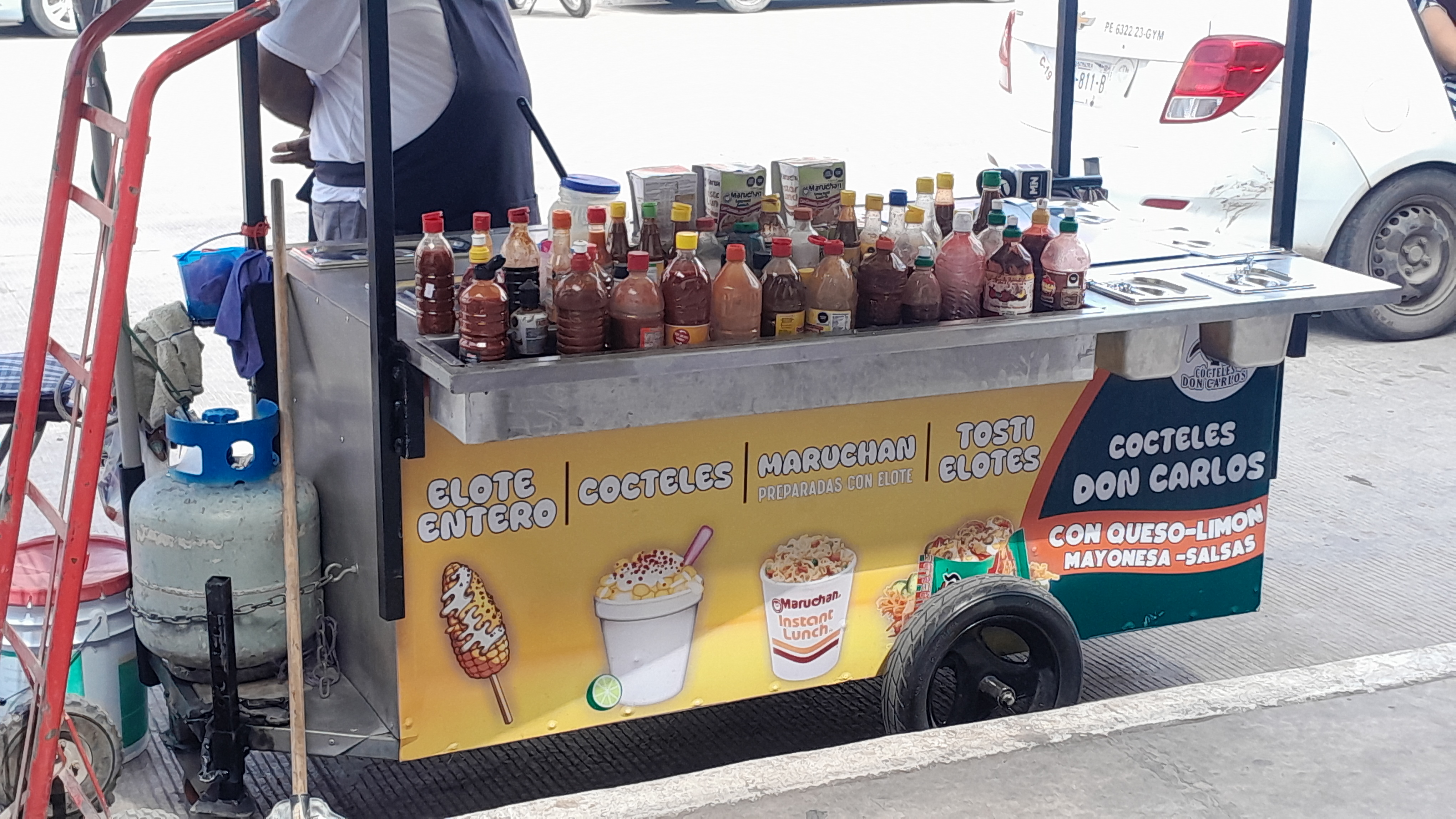 "La que tenía anterior me ayudó como 25 años, me gusta renovar, me gusta tener lo mejor que se pueda y hacer lo mejor que se pueda, ahorita están los elotes, cocteles, maruchanes, duritos, tostielotes, tengo un carrito de hot dogs también allá afuera de mi casa allá me voy también, allá los espero también afuera de la federal 1." expresó Don Carlos.