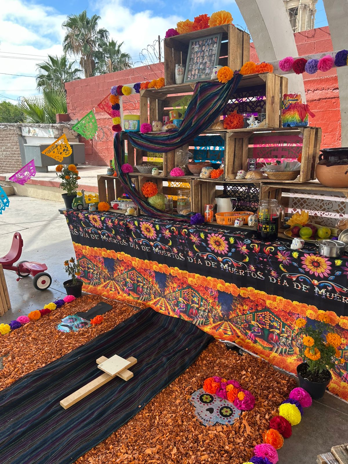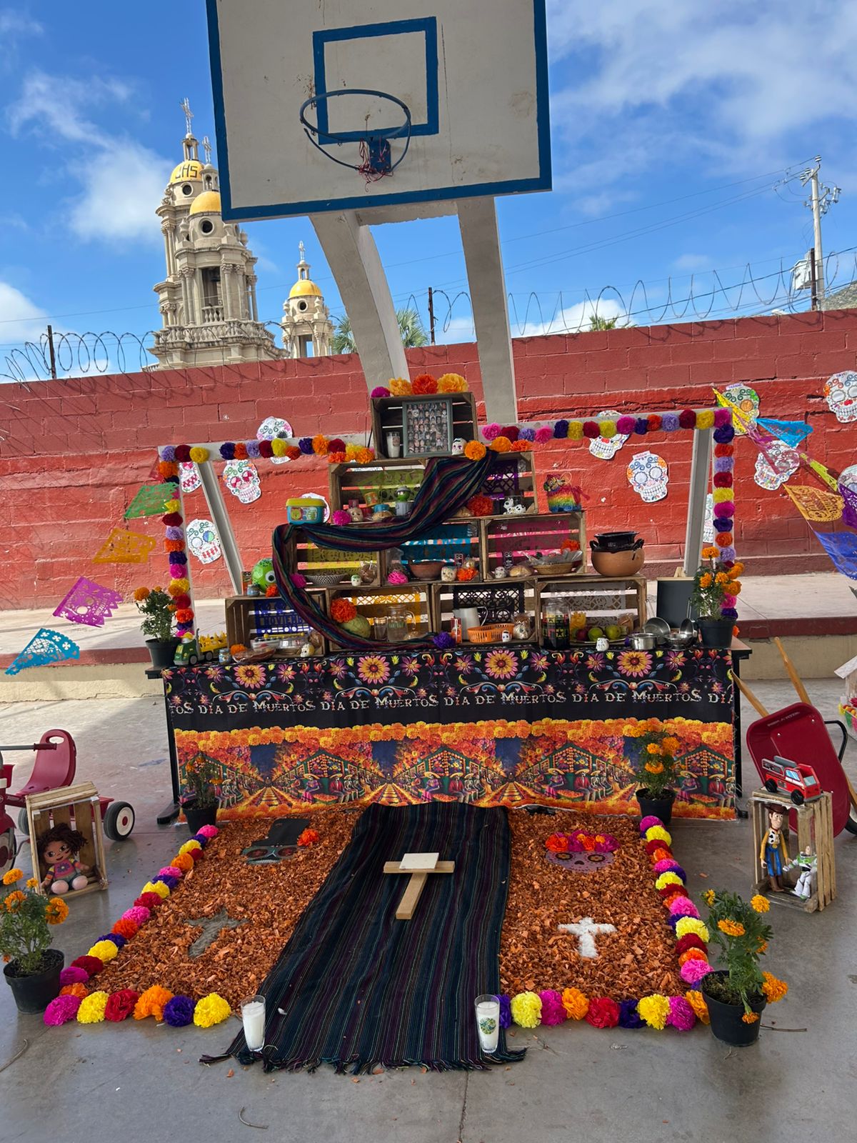 Como parte de las actividades, docentes y alumnos elaboraron un altar de muertos en honor a las víctimas del incendio, el cual fue adornado con juguetes, alimentos y elementos representativos de la infancia, en un gesto de cariño y respeto hacia su memoria.