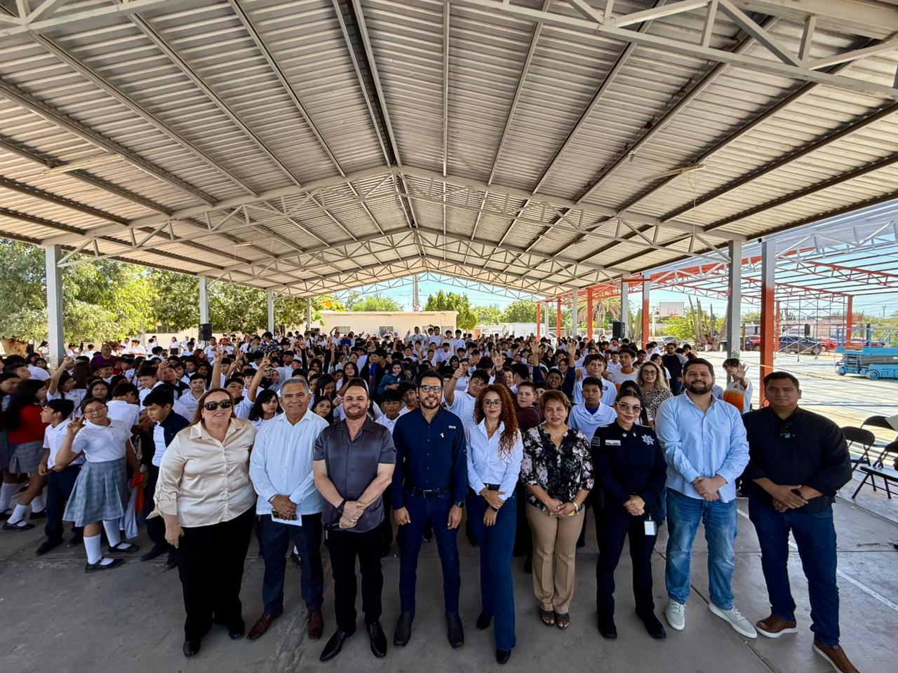 Entre los asistentes estuvieron Roberto Carlos Estrella Gil, director de Vinculación del Centro de Prevención del Delito Estatal; Lic. Ana Ivette Gutiérrez, directora general de Prevención del Delito Estatal; Lic. Janeth Cecilia Espinoza Sánchez, coordinadora regional Guaymas-Empalme de Prevención del Delito Estatal; Profr. Joaquín Villanueva Lobio y el maestro Manuel Martínez Valenzuela.