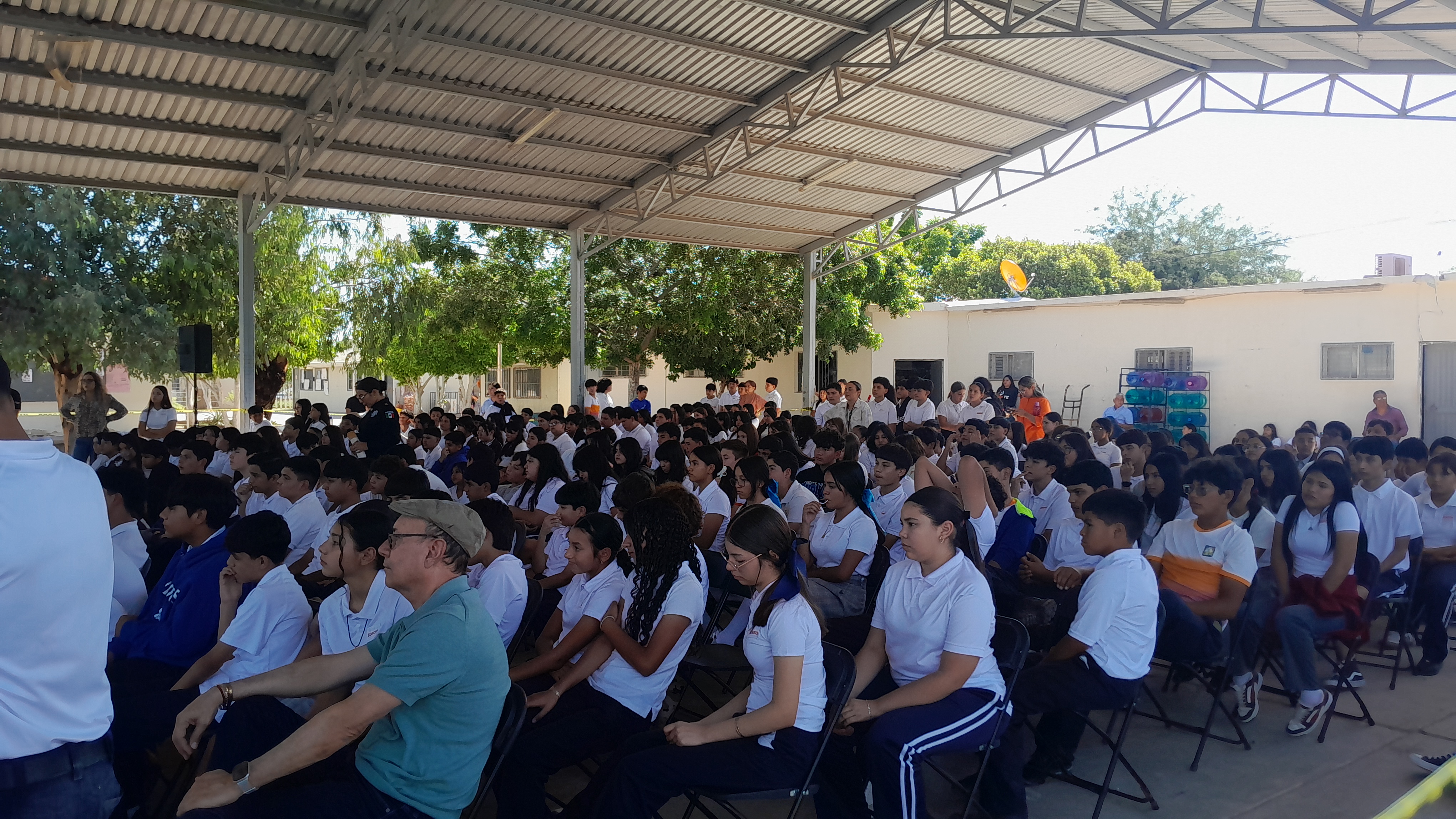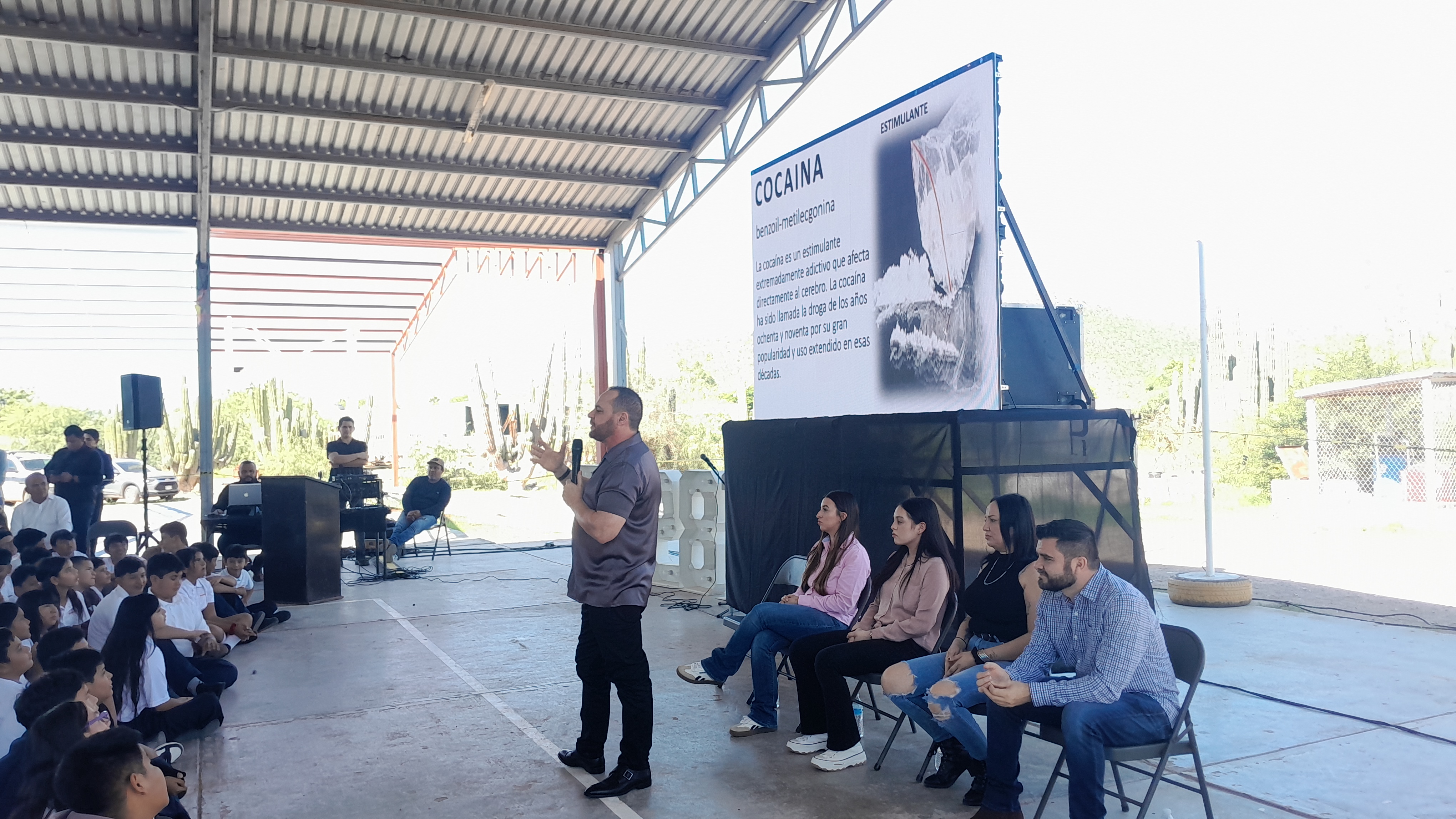 Con el propósito de crear conciencia entre los jóvenes y mitigar el impacto de las drogas en la comunidad, se impartió la conferencia "Más salud, menos adicciones" a estudiantes de la Telesecundaria No. 281 de Empalme.