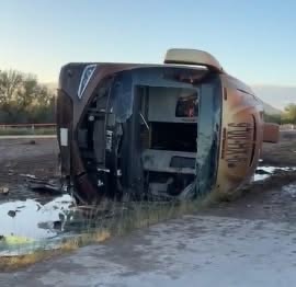 Un autobús de la línea Tufesa volcó an el kilómetro 240 de la carretera Guaymas a Hermosillo dejando a seis personas sin vida según los informes preliminares, esto la mañana de este viernes.