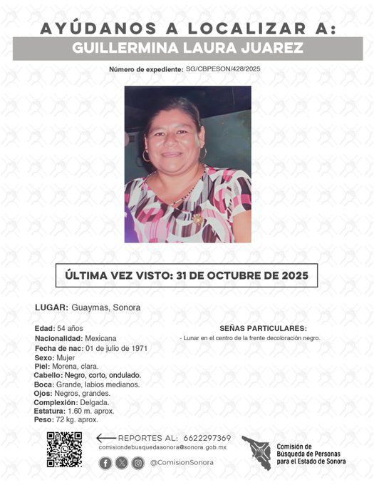 La Fiscalía General de Justicia del Estado de Sonora (FGJES) reitera su compromiso con la búsqueda y localización de personas, y agradece la colaboración ciudadana en la atención y pronta resolución de reportes de extravío.