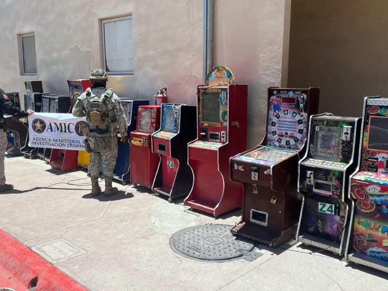 Mediante operativos efectuados en Ciudad Obregón y Empalme, policías ministeriales y elementos del Ejército y la Marina aseguraron 27 máquinas tragamonedas que eran operada de manera irregular.